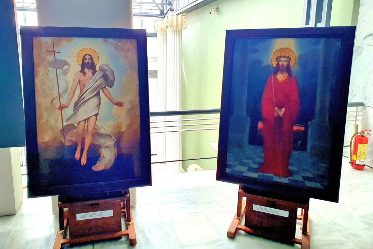 Ιδιαίτερη θέση σε αυτή την έκθεση κατέχουν δύο μοναδικοί ζωγραφικοί πίνακες: ο «Ανιστάμενος Χριστός» και «Ιδού ο Άνθρωπος» του μεγάλου Έλληνα Ζωγράφου Κωνσταντίνου Παρθένη (1878-1967), που για πρώτη φορά βγαίνουν από το Επισκοπείο για να παρουσιαστούν στο κοινό.