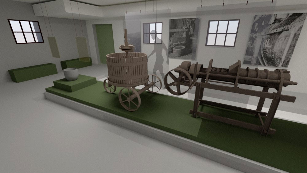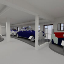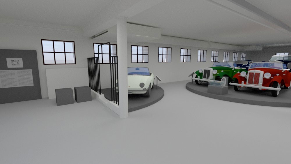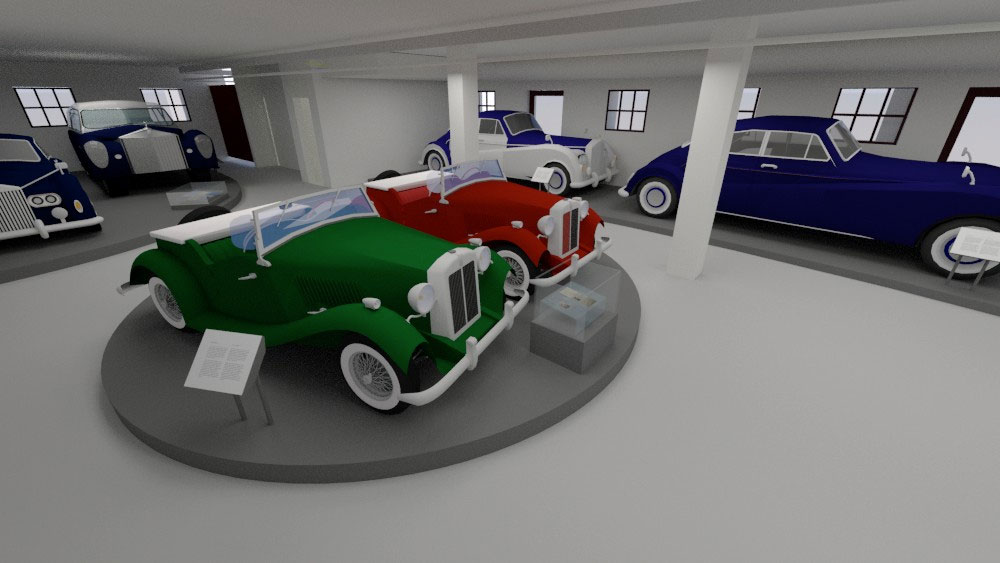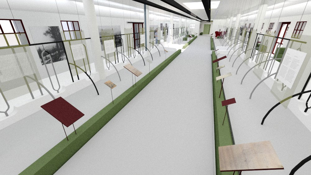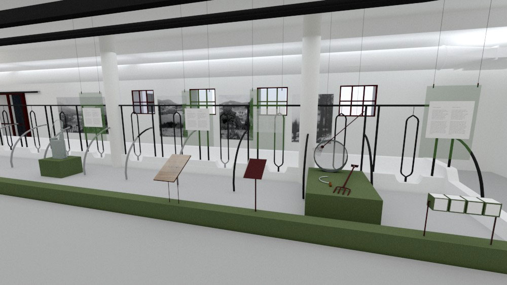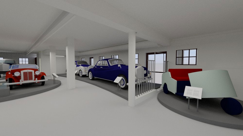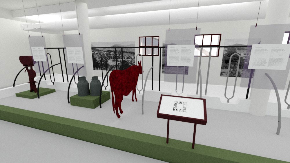 Η Έκθεση της Αγροκτηνοτροφικής Παραγωγής χωροθετείται στη βόρεια και στην ανατολική πτέρυγα του κτηρίου, ενώ η Έκθεση των Βασιλικών Αυτοκινήτων στη δυτική πτέρυγα. Στην αγροκτηνοτροφική εκθεσιακή ενότητα θα εκτεθούν τεκμήρια της αγροτικής και κτηνοτροφικής παραγωγής του κτήματος, με ξεχωριστά τμήματα για την έκθεση παραγωγής γαλακτοκομικών. Επίσης, θα διατηρηθεί και θα αναδειχτεί ο εξοπλισμός που βρέθηκε στο Βουστάσιο και σχετίζεται με την αγροτική παραγωγή λαδιού και κρασιού. Ο εκθεσιακός εξοπλισμός είναι λιτός, με καθαρή γεωμετρία και σαφή αισθητική διαφοροποίηση από το κέλυφος, τυπολογικά ομοιογενής και ομαδοποιημένος, ανάλογα με τη χρήση που καλείται να εξυπηρετήσει, ενώ η διάταξή του στο χώρο είναι ανεξάρτητη από τη γεωμετρία και τα δομικά στοιχεία του. Στην ανεξάρτητη εκθεσιακή ενότητα των βασιλικών αυτοκινήτων, θα εκτεθούν οκτώ αυτοκίνητα: Ένα άσπρο Fiat 500™, δύο αυτοκίνητα μάρκας MG™, τέσσερα αυτοκίνητα κατασκευής Rolls-Royce™ και ένα ηλεκτροκίνητο Victor, από τα συνολικά 10 βασιλικά αυτοκίνητα που έχουν χαρακτηριστεί ως μνημεία. Στην ίδια ενότητα εκτίθενται τα διπλώματα οδήγησης του Παύλου και της Φρειδερίκης και φωτογραφικό υλικό. Στον όροφο, ως ανεξάρτητη ενότητα, χωροθετείται αίθουσα πολλαπλών χρήσεων για εκδηλώσεις και διαδραστικά τμήματα της έκθεσης. Ο άμεσος περιβάλλων χώρος του κτηρίου παίρνει μορφή μικρού περιπάτου και αναψυχής περιμετρικά αυτού.