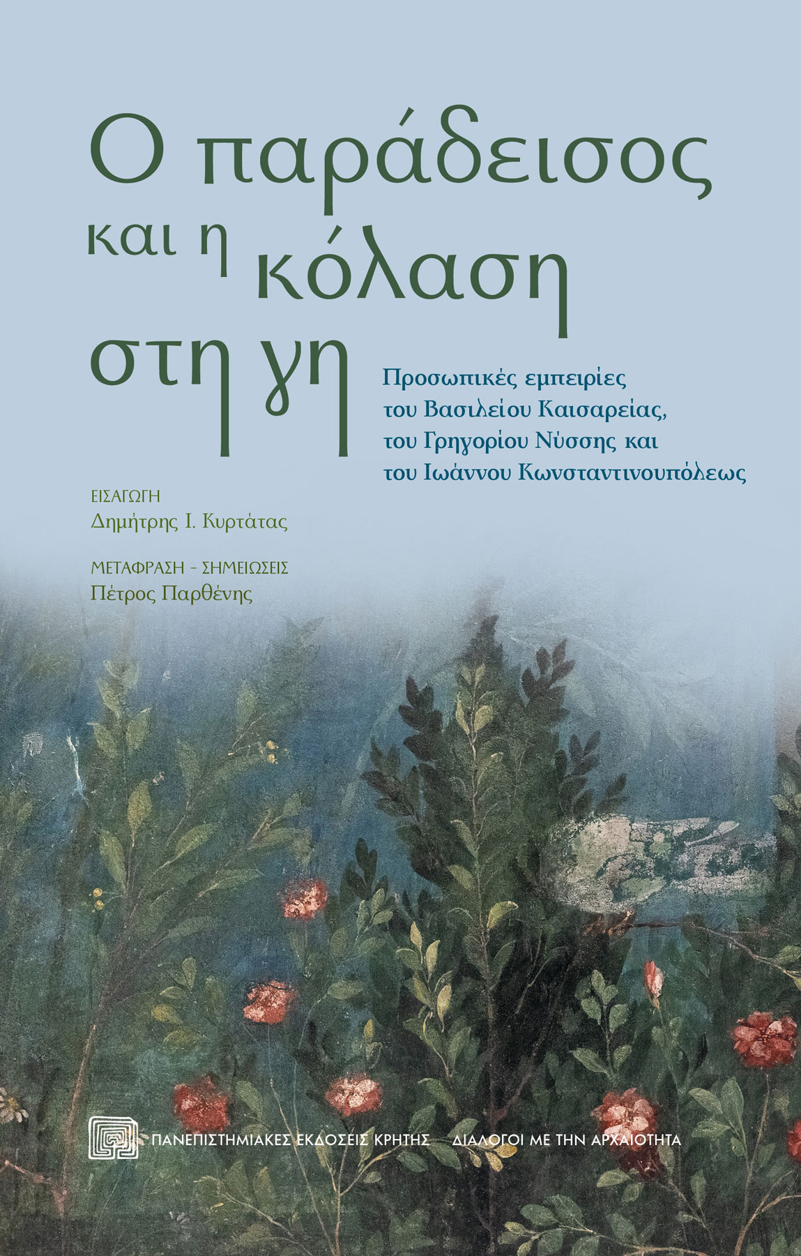 Ο παράδεισος και η κόλαση στη γη. Προσωπικές εμπειρίες του Βασιλείου Καισαρείας, του Γρηγορίου Νύσσης και του Ιωάννου Κωνσταντινουπόλεως (σειρά: Διάλογοι με την Αρχαιότητα), Μετάφραση-Σημειώσεις: Πέτρος Παρθένης, Εισαγωγή: Δημήτρης Ι. Κυρτάτας, Πανεπιστημιακές Εκδόσεις Κρήτης, 2024, 128 σελ. ISBN: 978–618–230–084–8