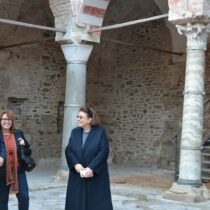 Τη Λίνα Μενδώνη στην αυτοψία συνόδευσαν ο Γενικός Γραμματέας Πολιτισμού Γιώργος Διδασκάλου, οι προϊστάμενοι των Διευθύνσεων Αναστήλωσης Βυζαντινών και Μεταβυζαντινών Μνημείων και Βυζαντινών και Μεταβυζαντινών Αρχαιοτήτων Θέμις Βλαχούλης και Ιουλία Παπαγεωργίου, αντίστοιχα, η προϊσταμένη της Εφορείας Αρχαιοτήτων Πόλης Θεσσαλονίκης Ελισάβετ Τσιγαρίδα και άλλα υπηρεσιακά στελέχη του ΥΠΠΟ.
