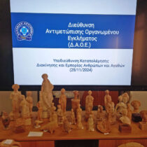 Δύο συλλήψεις πραγματοποιήθηκαν τη Δευτέρα 25 Νοεμβρίου 2024 στο πλαίσιο επιχείρησης της Υποδιεύθυνσης Καταπολέμησης Διακίνησης και Εμπορίας Ανθρώπων και Αγαθών, της Διεύθυνσης Αντιμετώπισης Οργανωμένου Εγκλήματος, κατά την οποία εντοπίστηκαν 172 αρχαία αντικείμενα σε τρεις οικίες στον Άλιμο Αττικής.