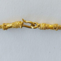Στην πρόσοψη αυτή αποκαθίστανται κορινθιακοί ημικίονες. Επάνω τους έτρεχε αδιάρθρωτος θριγκός με ταινία επιστυλίου που είχε κατατομή δωρικού ράμφους. Η διάμετρος των ημικιόνων και το ολικό ύψος του κίονα έχει ως αποτέλεσμα κορινθιακό κίονα με τις χαμηλότερες αναλογίες όλων των εποχών. Οι σιγμοειδούς κατατομής βάσεις των ημικιόνων είναι Πελοποννησιακού τύπου, όπως αυτοί που βρίσκονται στο ναό του Απόλλωνα στις Βάσσες. Τα μέχρι τώρα ανασκαφικά δεδομένα ανασυνθέτουν μνημειακή όψη τριών μέτρων. Τα μετακιόνια διαστήματα ανάμεσα στους σύνθετους στύλους καλύπτονταν από ορθοστατικές πλάκες-θωρακεία. Το κορινθιακό κιονόκρανο φέρει μικροσκοπικό, αργό, κυμάτιο κάτω από τις ακάνθους, καθώς και 20 σχηματοποιημένες άκανθες-φύλλα στην ημιπεριφέρεια του καλάθου, γεγονός που επιτρέπει κάθε είδους συγκρίσεις με τα πρώιμα παραδείγματα, όπως είναι αυτό στον κορινθιακό κίονα στο ναό του Απόλλωνα των Βασσών. Επιπλέον, αποτελεί την πρωιμότερη ολοκληρωμένη κορινθιακή σύνθεση που γνωρίζουμε στο εσωτερικό ενός μνημείου, ενώ για πρώτη φορά συνδέεται άμεσα με ταφική χρήση, όπως ακριβώς παραδίδεται στην ανεκδοτολογική αναφορά του Βιτρούβιου. Στους λιθοπλίνθους του ερειπιώνα περιλαμβάνονται και αρχιτεκτονικά μέλη που δεν προέρχονται από το κορινθιακό οικοδόμημα. Πρόκειται κυρίως για μέλη ενιαίου ιωνικού θριγκού με επιστύλιο και συνδυασμό ζωφόρου και οδόντων, θραύσματα κιόνων, αετωματικούς λίθους και ιωνικό κιονόκρανο που συνέχεται με ημικίονες συμφυείς σε σύνθετες λιθοπλίνθους. Προέρχονται από κτίριο το οποίο θα αναζητηθεί πολύ κοντά στο υπό έρευνα μνημείο.