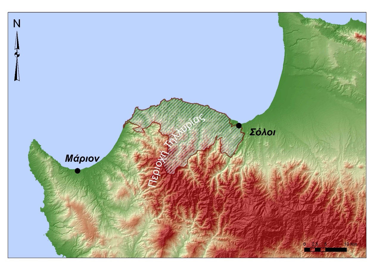 Η ίδια γεωγραφική περιοχή περιβαλλόταν κατά την αρχαιότητα από δύο ισχυρά βασίλεια, του Μάριου [σημ. 5] στα δυτικά και των Σόλων [σημ. 6] στα ανατολικά (εικ. 2). Τα γεωγραφικά όρια των δύο αυτών βασιλικών κέντρων δεν είναι γνωστά σήμερα [σημ. 7] με τρόπο που να επιτρέπει την κατανόηση της επέκτασής τους εντός της γεωγραφικής επικράτειας της Τηλλυρίας. Ωστόσο, θα πρέπει να θεωρηθεί βέβαιο ότι η περιοχή θα αλληλεπιδρούσε με τα βασίλεια αυτά (ιδιαίτερα με το βασίλειο των Σόλων), των οποίων προφανώς θα αποτελούσε τμήμα, πιθανώς ως μέρος των διοικητικών τους περιφερειών [σημ. 8].