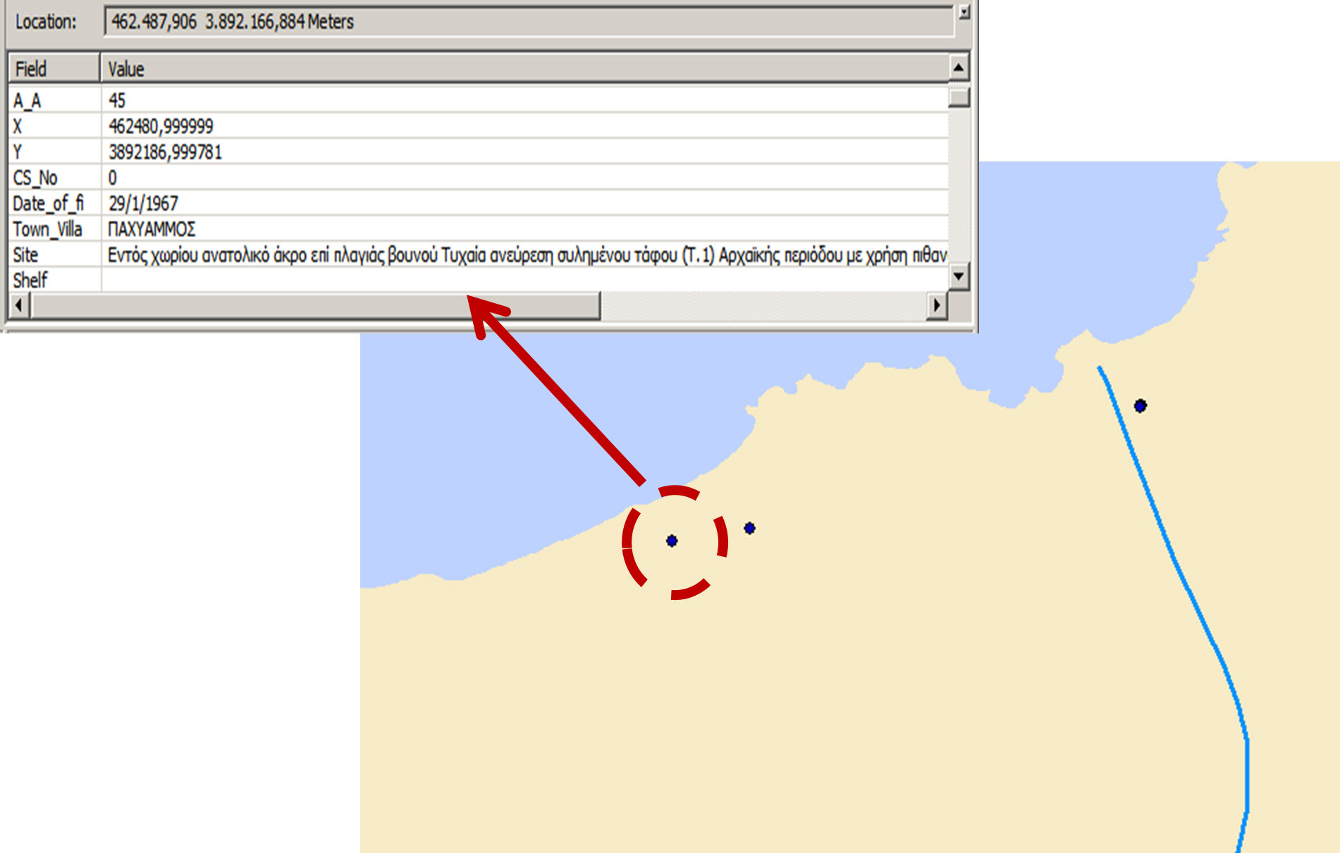 Στο ψηφιακό περιβάλλον που δημιουργήθηκε η κάθε αρχαιολογική θέση εντοπίστηκε και τοποθετήθηκε ξεχωριστά στον χάρτη, συνοδευόμενη από τις αντίστοιχες διαθέσιμες περιγραφικές πληροφορίες (εικ. 3). Αξίζει να σημειωθεί ότι για την πραγματοποίηση της παρούσας έρευνας χρησιμοποιήθηκε μέθοδος συμβατή με το πρόγραμμα ψηφιοποίησης χώρων και αντικειμένων, που διαχειρίζεται το Τμήμα Αρχαιοτήτων Κύπρου, το «Cyprus Archaeological Digitization Programme». Το Τμήμα Αρχαιοτήτων αποτέλεσε και τον τελικό χρήστη των αποτελεσμάτων της συγκεκριμένης έρευνας, με στόχο τα αποτελέσματά της να ενσωματωθούν στην υφιστάμενη βάση δεδομένων του.