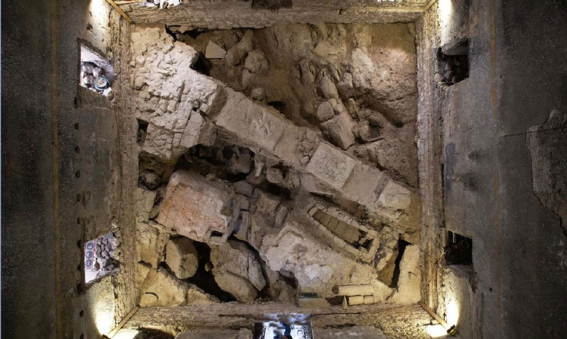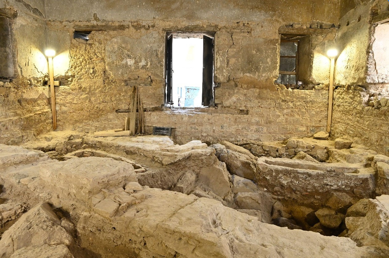Κατά την απομάκρυνση της επιχωμάτωσης της ισόγειας στάθμης αποκαλύφθηκαν σημαντικά ευρήματα εντός του κελύφους του μνημείου, σε βάθος 1 μ. περίπου, από τη στάθμη εισόδου. Από ευρήματα, όπως η εντοιχισμένη επιγραφή των παλαιοχριστιανικών χρόνων και άλλα μαρμάρινα μέλη στη βάση του μιναρέ, προκύπτει ότι το Τζαμί ανεγέρθηκε στα θεμέλια βυζαντινού ναού. Αποκαλύφθηκαν τμήματα του φυσικού βράχου επί του οποίου θεμελιώθηκε το τέμενος, πλήθος ταφών του 13ου–14ου αιώνα, κινητά ευρήματα μεταξύ των οποίων νομίσματα, κομβία, γυάλινα θραύσματα κ.ά., θεμέλια παλαιότερου κτίσματος, αποσπασματικά τμήματα από τρία πλίνθινα δάπεδα. Σύμφωνα με τα δεδομένα της ανασκαφής και τη μελέτη των ευρημάτων, εκτιμάται ότι στο εσωτερικό του τεμένους αποκαλύφθηκε το μεσαίο κλίτος μιας τρίκλιτης βασιλικής. Κατόπιν αυτού αντικαθίσταται το προβλεπόμενο κεραμικό δάπεδο με γυάλινο, προκειμένου να παραμείνουν ορατά τα ευρήματα, αναδεικνύοντας τα παλαιότερα στρώματα της ιστορίας της περιοχής, πριν από την οικοδόμηση του ίδιου του μνημείου, εμπλουτίζοντας την ιστορική και αρχαιολογική αξία του, ενισχύοντας παράλληλα τη μελλοντική του αξιοποίηση, ως χώρου πολιτιστικών εκδηλώσεων, όπως προβλέπεται από τη μελέτη αποκατάστασης και επανάχρησής του.