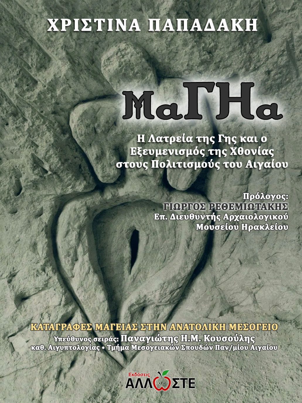 Χριστίνα Παπαδάκη, ΜαΓΗα. Η λατρεία της Γης και ο εξευμενισμός της Χθονίας στους πολιτισμούς του Αιγαίου, πρόλογος: Γιώργος Ρεθεμιωτάκης, Εκδόσεις Άλλωστε (σειρά: Καταγραφές μαγείας από την αρχαιότητα έως σήμερα), 2024, 244 σελ. ISBN: 978-618-5761-12-7