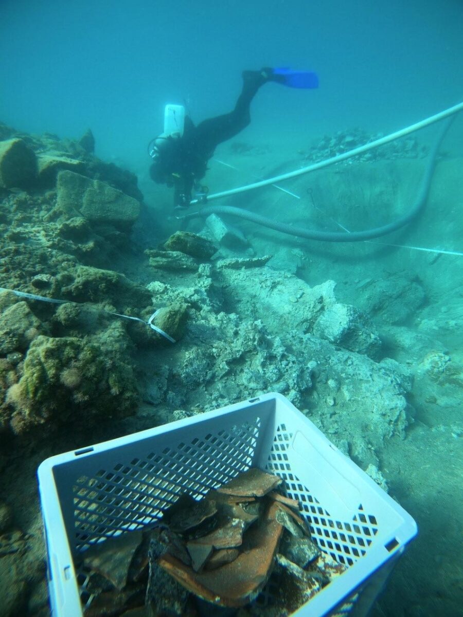 Οι εργασίες πεδίου του 2024 έδειξαν ότι στον πυθμένα διατηρούνται σημαντικά κατάλοιπα της λιθόκτιστης λιμενικής εγκατάστασης. Αυτά αποτελούνται από πεσμένο υλικό, όπως λίθοι και κατεργασμένα δομικά υλικά. Πιθανόν τα σημαντικότερα ευρήματα είναι τα όστρακα αμφορέα που βρέθηκαν στη λιθόκτιστη κατασκευή και το θραυσμένο αγγείο στον τομέα 4Α. Τα συνευρήματα αυτών των αποσπασματικά σωζόμενων αγγείων υποδηλώνουν ότι αποτέθηκαν κατά τη διάρκεια της χρήσης του πλατώματος ή κατά τον χρόνο εγκατάλειψης και πτώσης του. Μπορούν επομένως να χρησιμοποιηθούν ως ενδείξεις στη συζήτηση σχετικά με τη χρονολόγηση της κατασκευής.
