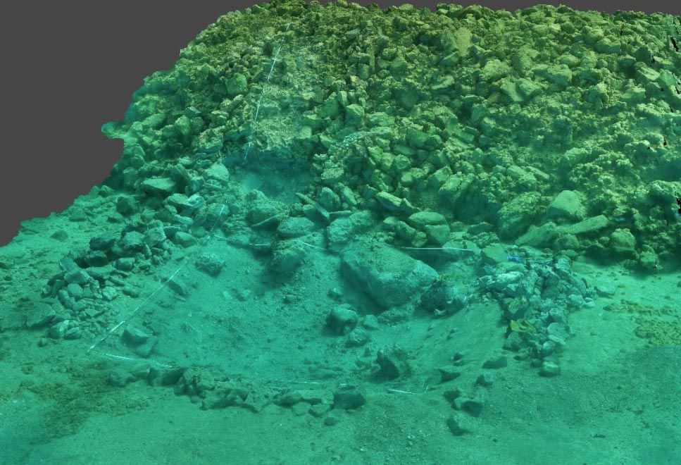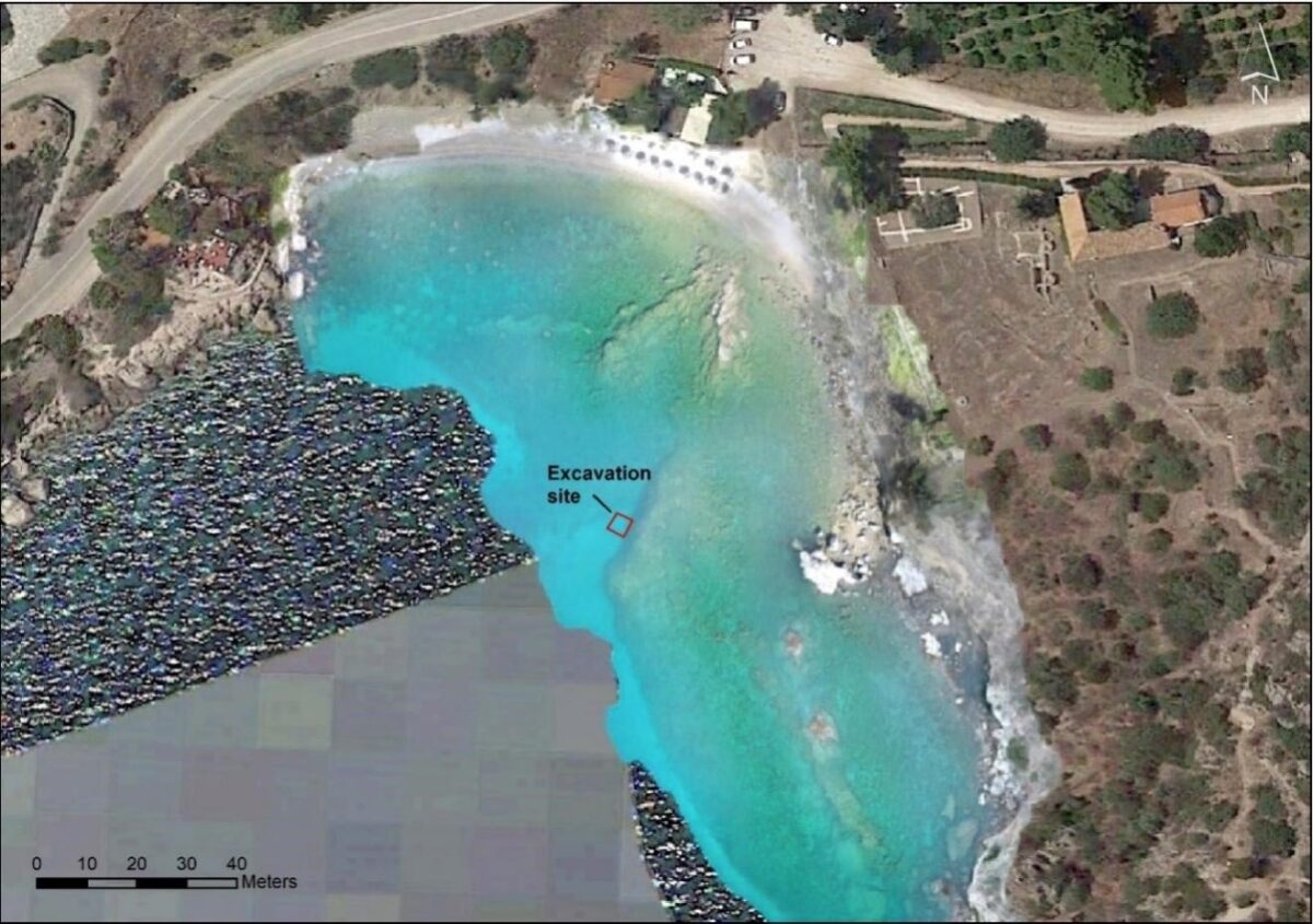 Η ενάλια ανασκαφική έρευνα του 2024 επικεντρώθηκε στον πυθμένα της θάλασσας πλησίον του βορειοδυτικού άκρο του τεχνητού πλατώματος. Το συγκεκριμένο σημείο επιλέχθηκε με γνώμονα το ότι το τεχνητό πλάτωμα σώζεται εκεί σε καλή κατάσταση, ενώ φαίνεται να έχει διατηρήσει και μεγάλο μέρος του αρχικού του σχήματος. Η έκταση που κατέλαβε η ανασκαφική τομή ήταν 16 τ.μ. Η ανεσκαμμένη περιοχή τεκμηριώθηκε με φωτογραμμετρία στα σημεία όπου το επέβαλλαν η πολυμορφία και ποικιλομορφία των αρχαιολογικών συνόλων.