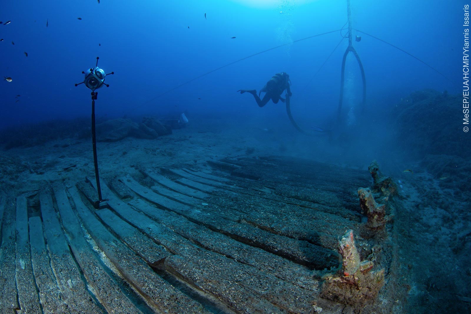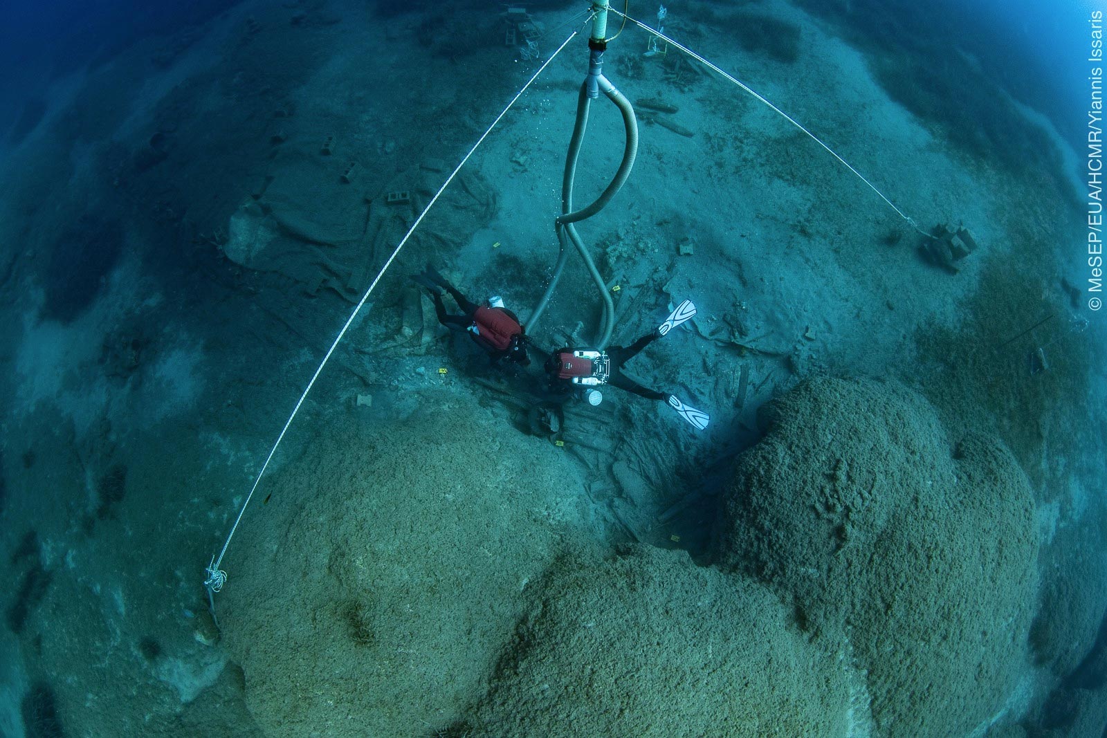 Η Εφορεία Εναλίων Αρχαιοτήτων ανασκάπτει συστηματικά τον χώρο του ναυαγίου από το 2009 έως σήμερα και έχει επικεντρωθεί στο τμήμα του πλοίου που διασώζεται ακόμα σε αρκετά καλή κατάσταση, δηλαδή στην πρύμνη του. Τα ευρήματα που ανελκύσθηκαν από τον χώρο είναι κυρίως αντικείμενα που χρησιμοποιούσε το πλήρωμα και οι επιβάτες (προσωπικά αντικείμενα, κοσμήματα, σκεύη, νομίσματα κ.λπ.), αλλά και όργανα ναυσιπλοΐας, όπλα και εξαρτήματα του πλοίου. Μεταξύ των αντικειμένων, ιδιαίτερο ενδιαφέρον παρουσιάζουν οι αρχαιότητες που σχετίζονται, μάλλον, με προσωπικές συλλογές των επιβαινόντων, όπως αρχαία νομίσματα, ενσφράγιστες λαβές αμφορέων, απολιθώματα, θραύσμα αρχαίου αιγυπτιακού φαραωνικού αναγλύφου και τμήμα αρχαίας αιγυπτιακής επιγραφής.