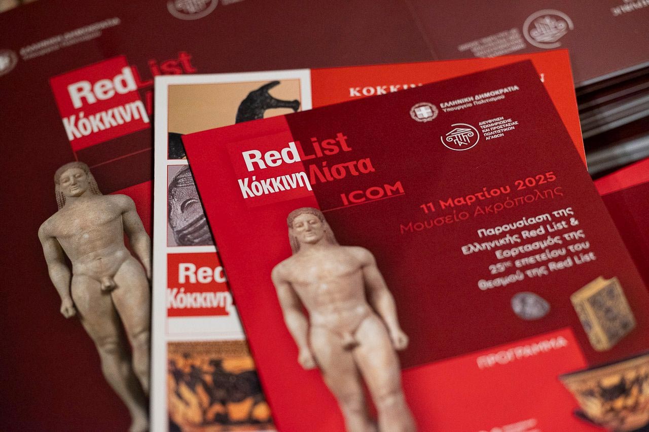 Παρουσία της Υπουργού Πολιτισμού Λίνας Μενδώνη, πραγματοποιήθηκε η επίσημη παρουσίαση της Ελληνικής Red List, ενός νέου σημαντικού εργαλείου για την προστασία της πολιτιστικής κληρονομιάς από την παράνομη διακίνηση, στο Αμφιθέατρο του Μουσείου της Ακρόπολης. Η Red List του ICOM είναι ένα διεθνές αναγνωρισμένο εργαλείο που βοηθά τις αρχές, όπως την αστυνομία και τους τελωνειακούς υπαλλήλους, να εντοπίζουν και να προστατεύουν πολιτιστικά αγαθά που κινδυνεύουν από παράνομη διακίνηση.