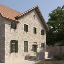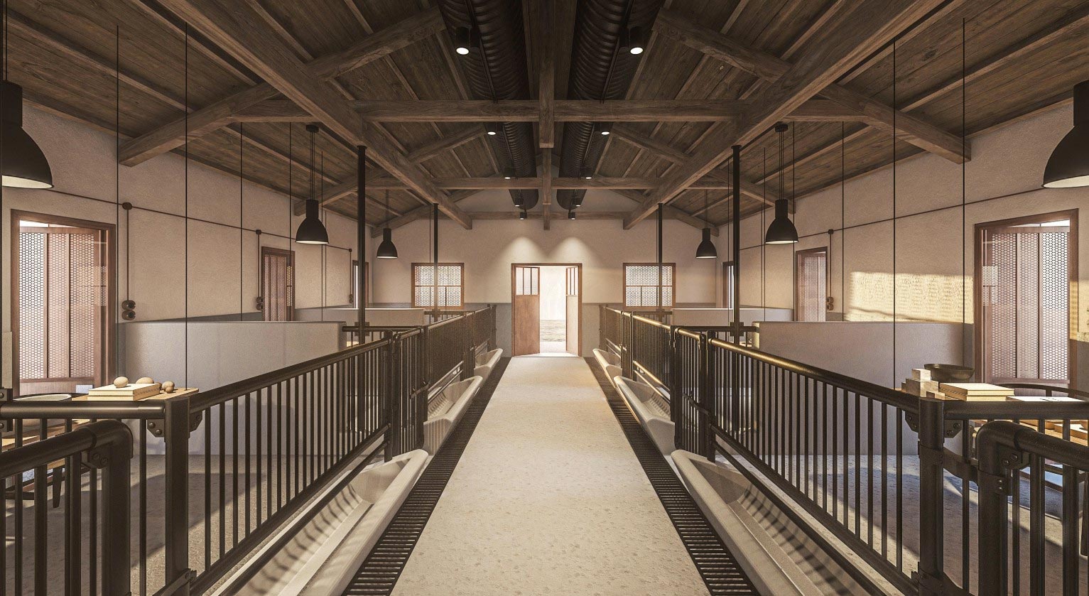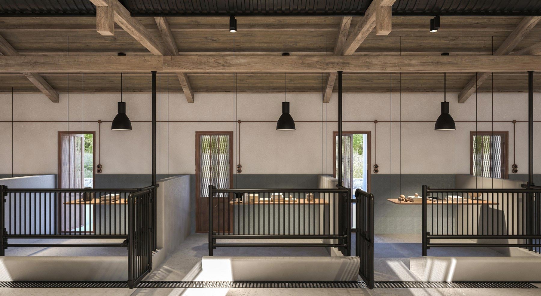 Με σεβασμό στη βιομηχανική αρχιτεκτονική του κτηρίου γίνονται οι αναγκαίες μετασκευές, ώστε να εξυπηρετηθεί η νέα χρήση. Για παράδειγμα, οι ταΐστρες και τα κιγκλιδώματα στους χώρους σταυλισμού διατηρούνται και χρησιμοποιούνται ως σημεία πώλησης. Στις ανοιχτές στάμνες–γούρνες χωροθετούνται οι χώροι υγιεινής. Οι πολλαπλές αυλές κατά μήκος της ανατολικής και της δυτικής όψης αναδεικνύονται και συνδυάζονται με τη νέα χρήση. Έμφαση δίνεται στον σεβασμό της υπάρχουσας μορφολογίας και τυπολογίας του κτηρίου, στην ανάδειξη των αξιόλογων χαρακτηριστικών του, στην αποκατάσταση του περιβάλλοντος χώρου του μνημείου και στη σωστή επανένταξή του στο ευρύτερο σύνολο του κτήματος.
