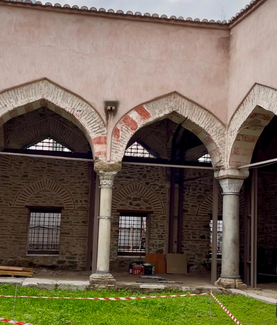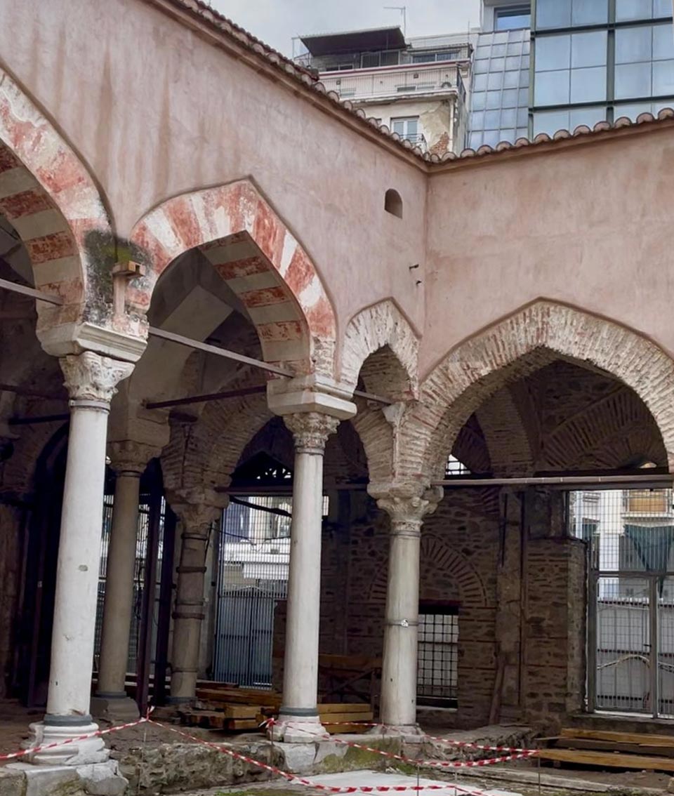Σε εξέλιξη βρίσκονται εργασίες προληπτικής στερέωσης του εσωτερικού διακόσμου του τεμένους από εξειδικευμένα συνεργεία συντηρητών, καθώς και η μερική απόσπαση των μαρμάρινων πλακών του δαπέδου, στον αίθριο χώρο. Στις εξωτερικές τοιχοποιίες του μνημείου πραγματοποιούνται εργασίες καθαίρεσης σαθρών αρμολογημάτων και επιχρισμάτων και εκτέλεση δειγμάτων νέων συμβατών κονιαμάτων.