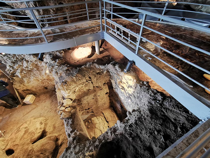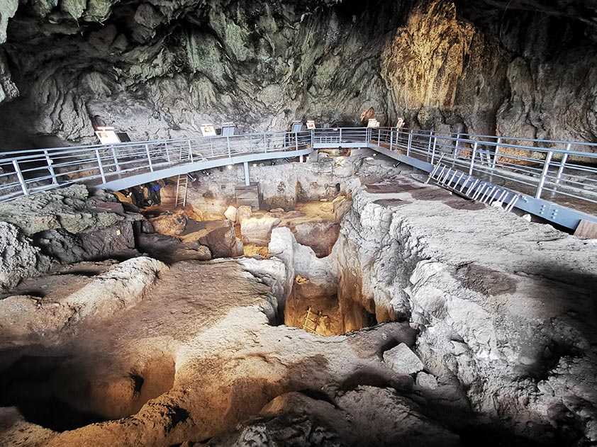 Για την ομαλή εκτέλεση όλων των παραπάνω εργασιών απαιτήθηκε ο πολύμηνος καθαρισμός όλης της έκτασης του σπηλαίου και η απομάκρυνση με αρχαιολογικές διαδικασίες των επιχώσεων που είχαν καλύψει μεγάλες εκτάσεις των ανασκαφικών τομών. Κατά τη διαδικασία αρχαιολογικού καθαρισμού των ανασκαφικών τομών εντοπίστηκαν πολυάριθμα ευρήματα από όλες τις χρονικές περιόδους χρήσης του σπηλαίου (Μέση και Ανώτερη Παλαιολιθική, Μεσολιθική, Νεολιθική), τα οποία συμπληρώνουν την ήδη γνωστή και καλά τεκμηριωμένη εικόνα που έχει προκύψει από τη συστηματική ανασκαφική διερεύνηση του σπηλαίου.