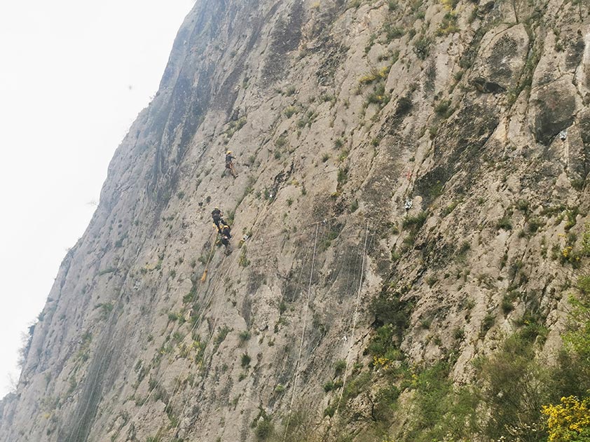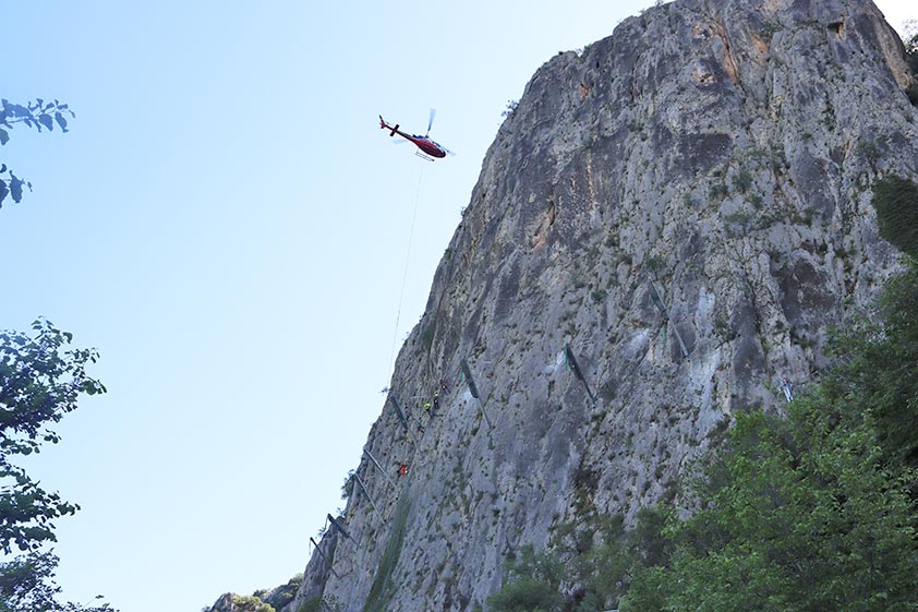 Το Υποέργο 2 («Στερέωση βραχωδών πρανών στο Σπήλαιο Θεόπετρας») υλοποιήθηκε από τη Διεύθυνση Τεχνικών Έργων της ΠΕ Τρικάλων με στόχο την αντιμετώπιση του κινδύνου πτώσης των βραχωδών πρανών και τη διασφάλιση των επισκεπτών εντός και εκτός του σπηλαίου. Στο πλαίσιο του έργου πραγματοποιήθηκαν εκτεταμένες αγκυρώσεις με παθητικά αγκύρια μήκους 8 μ. στο εσωτερικό του σπηλαίου, καθώς και αγκυρώσεις μεμονωμένων βραχοτεμαχίων στα εξωτερικά πρανή πρόσβασης στο σπήλαιο, ενώ με χρήση γερανοφόρου οχήματος και ελικοπτέρου εγκαταστάθηκαν από εξειδικευμένο προσωπικό (εναερίτες-αναρριχητές) ισχυροί φράχτες ανάσχεσης βραχοπτώσεων και αγκυρωμένο πλέγμα επένδυσης των βραχωδών πρανών.