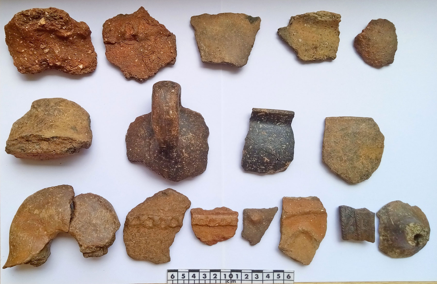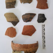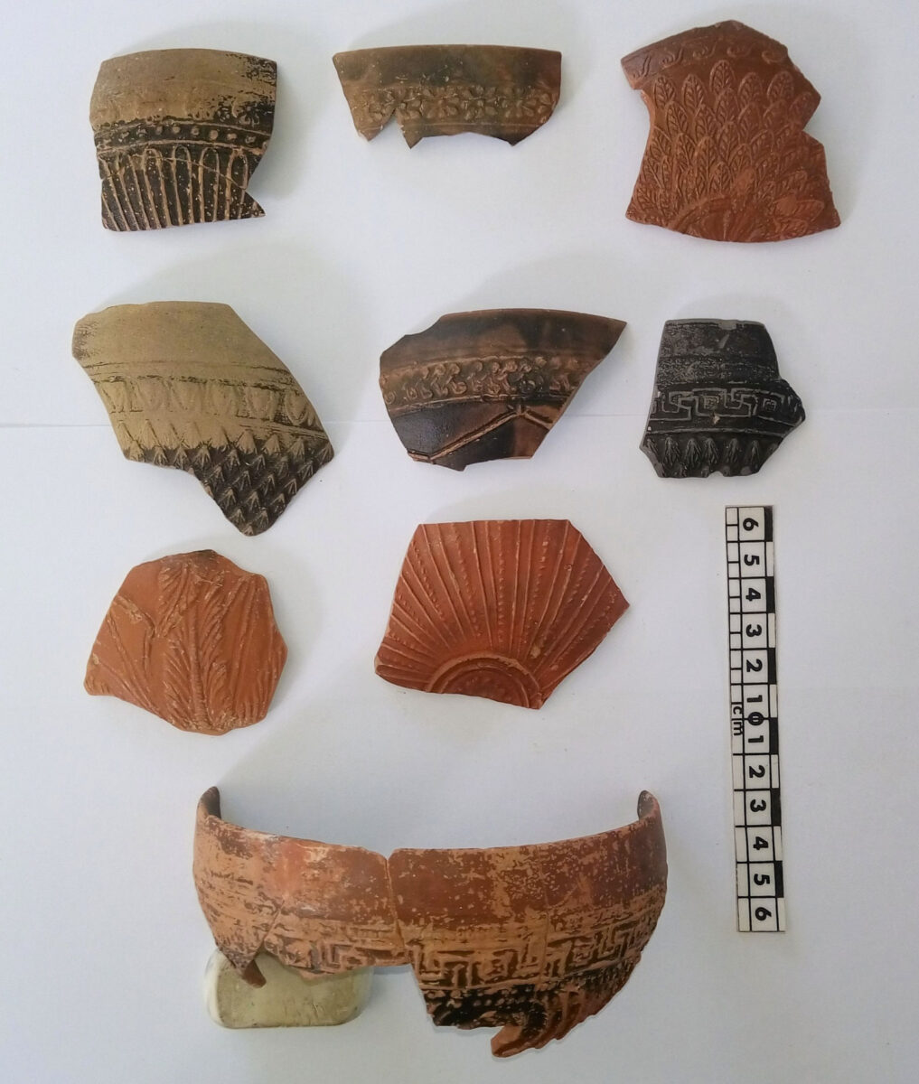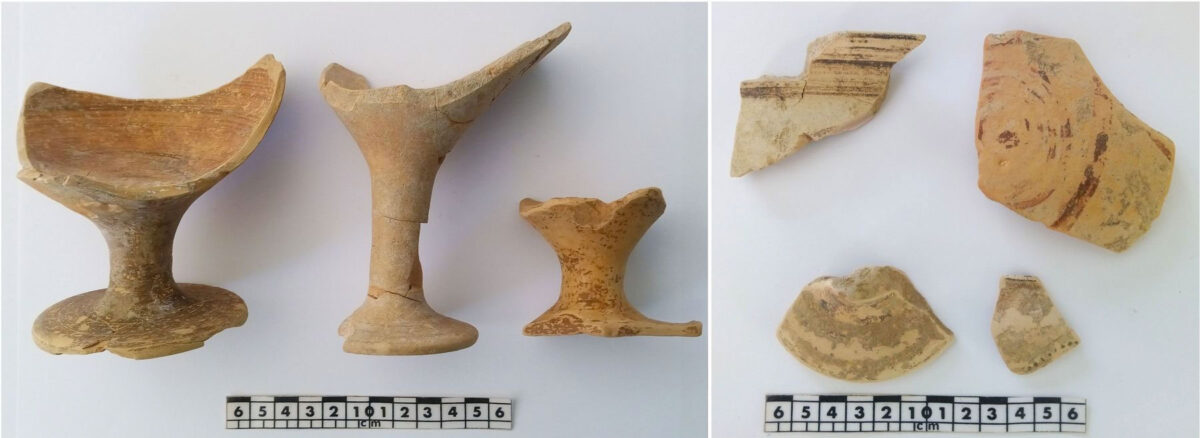 Όσον αφορά στους ιστορικούς χρόνους, ο μέγιστος όγκος του κεραμικού υλικού ανάγεται στην Ελληνιστική και πρώιμη Ρωμαϊκή περίοδο (έως και τον 1ο/2ο αι. μ.Χ.). Στο σύνολο των οστράκων μεγάλων σκευών, αναγνωρίζονται μέχρι τώρα και 8 θραύσματα περιρραντηρίων που συνηθίζονται σε ιερά.