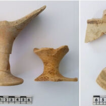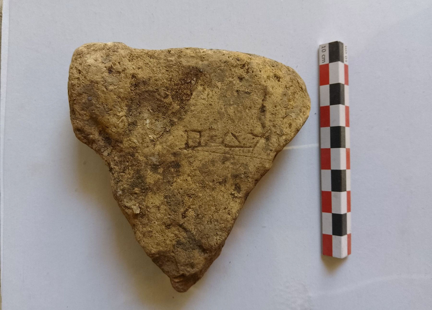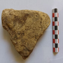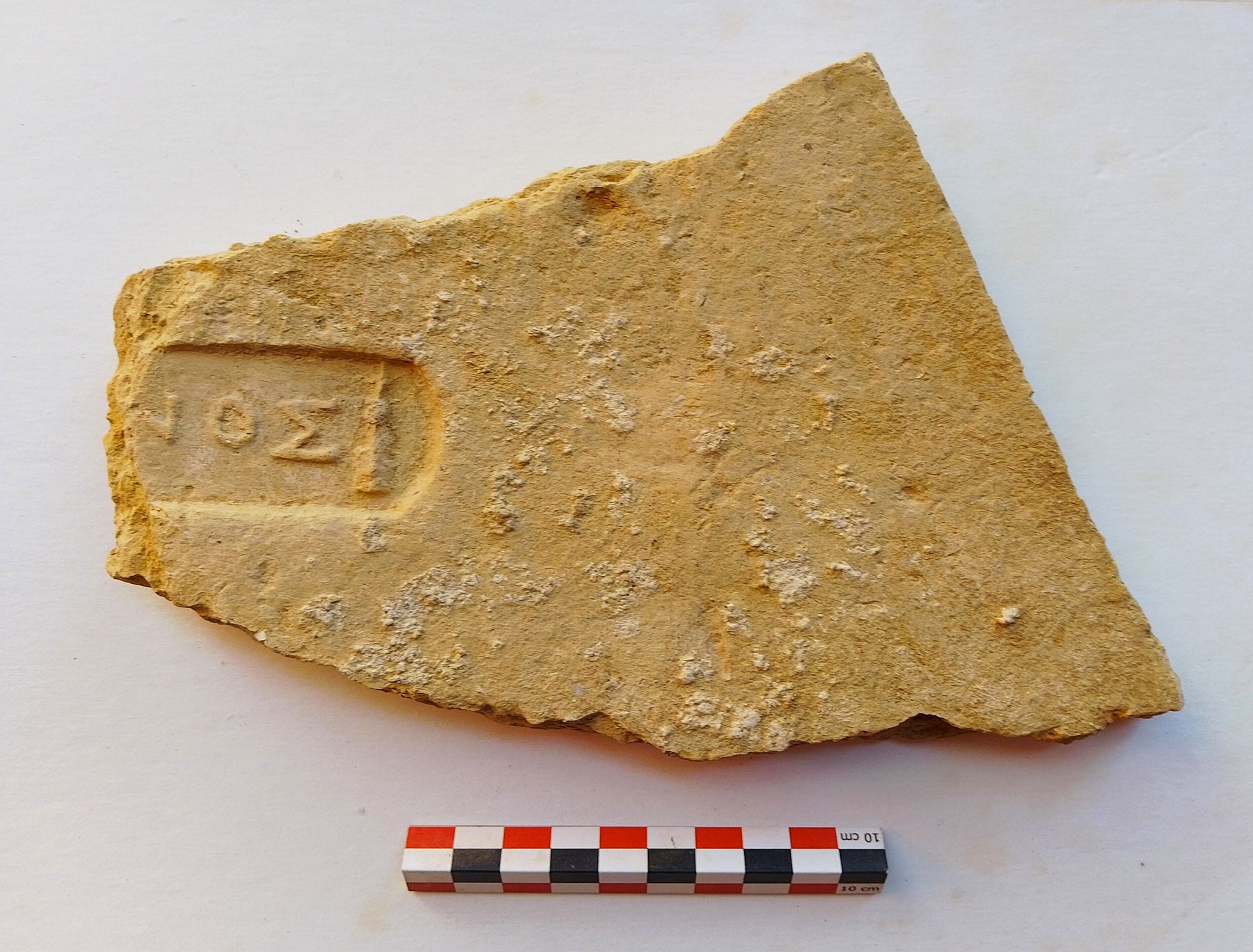 Από την πρόσφατη επεξεργασία του υλικού προέκυψε δείγμα πού σώζει σφράγισμα μείζονος σημασίας, με το όνομα [ΟΔ]ΥCCEOC (στη γενική) προς τα αριστερά. Σε άλλο θραύσμα διακρίνεται εγχάρακτη αφιερωματική επιγραφή, με το όνομά του πιθανότατα στη δοτική, ίσως από προσκυνητή: ΟΔΥC[CEI