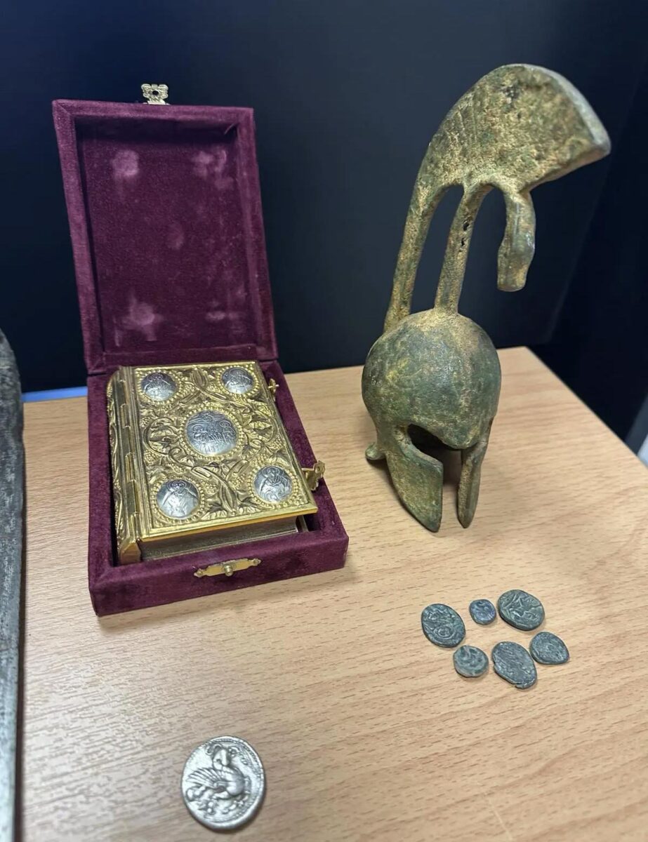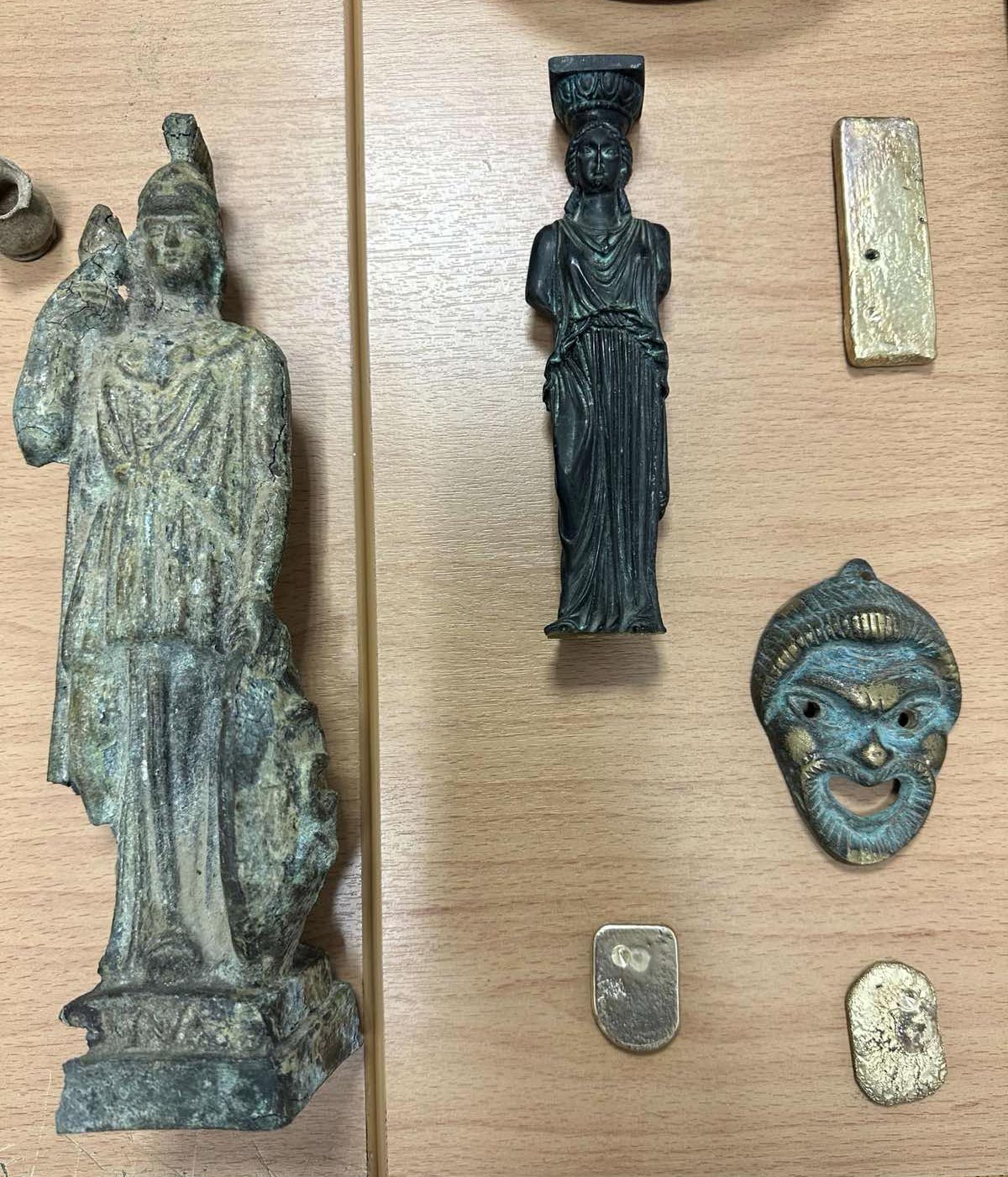 Στο πλαίσιο της αστυνομικής επιχείρησης κατασχέθηκαν, μεταξύ άλλων, 1.800 αρχαιολογικά ευρήματα, στα οποία περιλαμβάνονται πλήθος νομισμάτων διάφορων περιόδων και εκδόσεων, ζωόμορφα και ανθρωπόμορφα ειδώλια, καθώς και διάφορα αντικείμενα υπό μορφή αρχαίων προσωπείων και περικεφαλαίων. Τα 800 βρέθηκαν σε έρευνες στη Γερμανία.