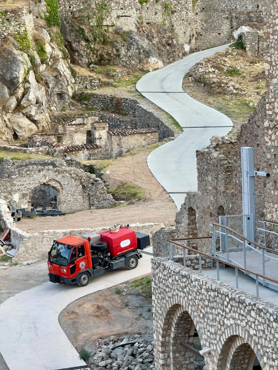 O αρχαιολογικός χώρος του Μυστρά διαθέτει πλέον ένα εξαιρετικά σύγχρονο, πλήρες και λειτουργικό σύστημα πυρόσβεσης για τη θωράκισή του από τους επαπειλούμενους κινδύνους της κλιματικής κρίσης, αποτελούμενο από 4 δεξαμενές ύδατος (120 κ.μ. εκάστη), 2 πυροσβεστικά συγκροτήματα, 41 πυροσβεστικές φωλιές, 82 πυροσβεστήρες ξηράς κόνεως από δύο σε κάθε πυροσβεστική φωλιά, 20 εκτοξευτήρες ύδατος και 16 πυροσβεστικούς σταθμούς. Το έργο της εγκατάστασης δικτύου πυρόσβεσης στον αρχαιολογικό χώρο του Μυστρά υλοποιήθηκε από τη Διεύθυνση Μελετών και Εκτέλεσης Έργων Μουσείων και Πολιτιστικών Κτιρίων του ΥΠΠΟ με πόρους, ύψους 3.000.000 ευρώ, από το Ταμείο Ανάκαμψης και Ανθεκτικότητας.