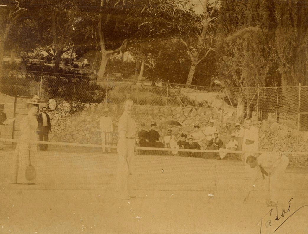 Η μελέτη για το γήπεδο τένις έχει ως στόχο την αποκατάσταση της αρχικής του μορφής, βάσει των διαθέσιμων ιστορικών τεκμηρίων και τη λειτουργική σύνδεσή του με τον κήπο του Ανακτόρου. Το γήπεδο τένις, που κατασκευάστηκε τη δεκαετία του 1890, έχει υποστεί σοβαρές φθορές, με αποτέλεσμα την καταστροφή του ασφαλτοτάπητα και της περίφραξης, καθώς και την επέκταση δασώδους βλάστησης που έχει προκαλέσει ζημιές στο ανάλημμα και τον χώρο του γηπέδου. Στόχος είναι η πλήρης αποκατάστασή του και η επαναφορά της χρήσης του.