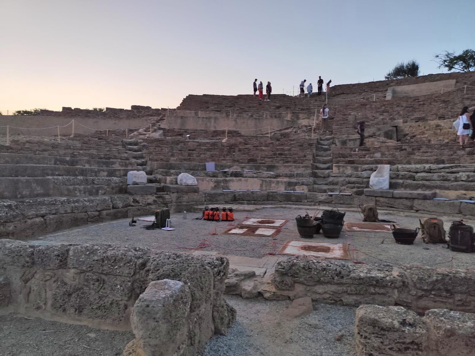 Τέλος, στο αρχαίο θέατρο της Ηφαιστίας, η Υπουργός Πολιτισμού παρακολούθησε, συνοδευόμενη από την Καλλιτεχνική Διευθύντρια του Εθνικού Θεάτρου Αργυρώ Χιώτη, την παράσταση «Θραύσματα: Ευριπίδης», στο πλαίσιο του προγράμματος «Γνωριμία με Αρχαία Θέατρα της Ελλάδας», το οποίο υλοποιείται με τη συνεργασία του Υπουργείου Πολιτισμού, του Εθνικού Θεάτρου και του Σωματείου «Διάζωμα». Πρόκειται για μια ευρηματική παράσταση θεάτρου και αρχαιολογίας συγχρόνως, σε σκηνοθεσία Ευθύμη Θέου, με τη συμμετοχή σημαντικών καλλιτεχνών του θεάτρου. Τ