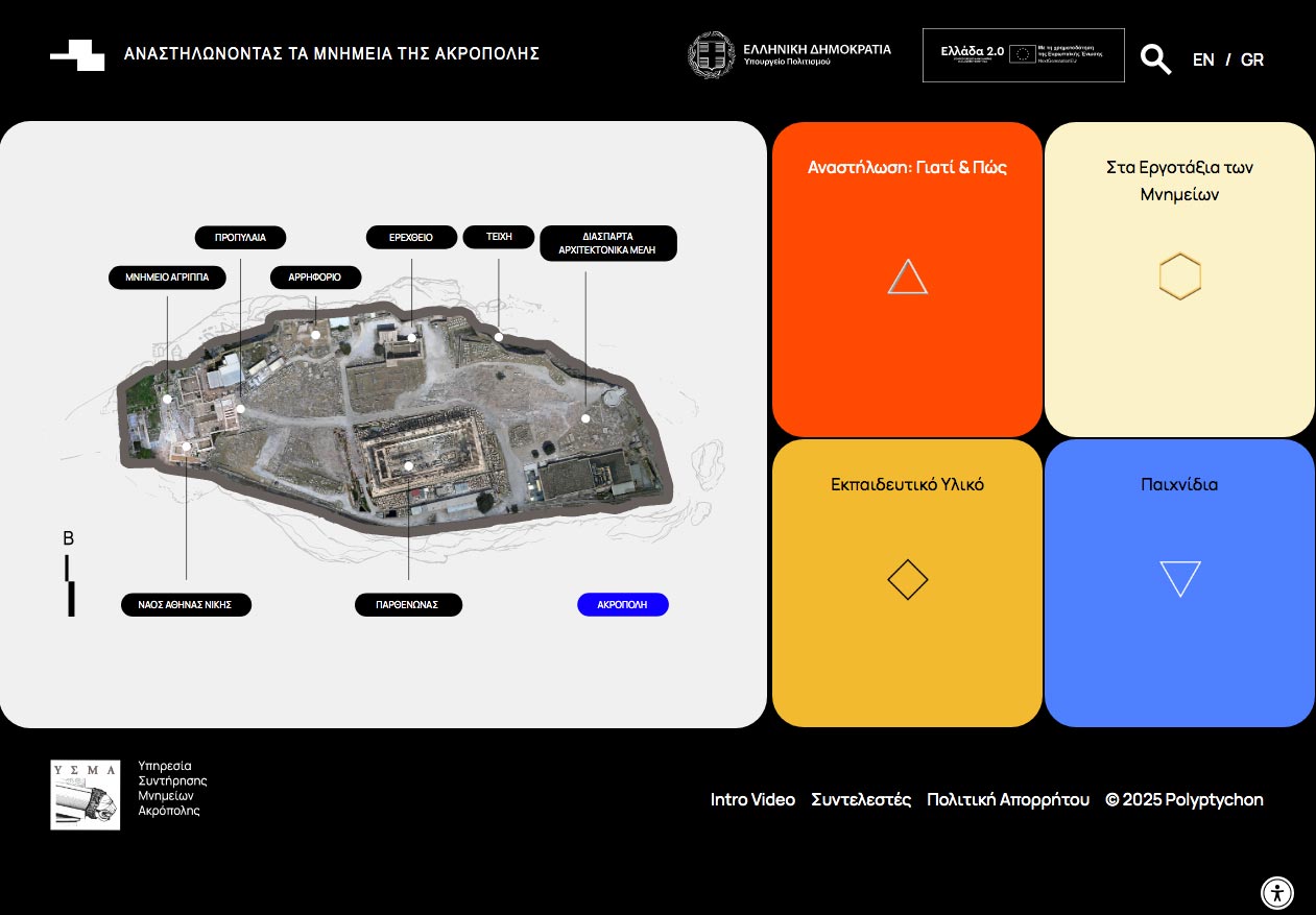 Η Υπηρεσία Συντήρησης Μνημείων Ακρόπολης (ΥΣΜΑ) ανακοίνωσε την ολοκλήρωση του νέου δίγλωσσου (ελληνικά–αγγλικά) εκπαιδευτικού ιστοτόπου «Αναστηλώνοντας τα Μνημεία της Ακρόπολης». Ο ιστότοπος δημιουργήθηκε από το Γραφείο Ενημέρωσης και Εκπαίδευσης της ΥΣΜΑ και απευθύνεται σε εκπαιδευτικούς και μαθητές της δευτεροβάθμιας εκπαίδευσης, αλλά και στο ευρύτερο κοινό που ενδιαφέρεται να γνωρίσει το σύγχρονο έργο αποκατάστασης των μνημείων της Ακρόπολης.