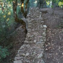 Ιδιαίτερο ενδιαφέρον παρουσιάζουν τα σωζόμενα τμήματα των οχυρώσεων, με επιμελημένη αργολιθοδομή πλάτους 1,20-1,80 μ. και ύψους έως 2,50 μ. Η μορφή τους εντάσσεται σε μια περιφερειακή «Κοινή» τειχοποιίας, χαρακτηριστική των ορεινών θέσεων των Γρεβενών κατά την αρχαιότητα (εικ. 7-8). Τα στοιχεία αυτά προσφέρουν πολύτιμες ενδείξεις για την τοπική αμυντική αρχιτεκτονική και τη χωροταξική οργάνωση της Δυτικής Μακεδονίας.