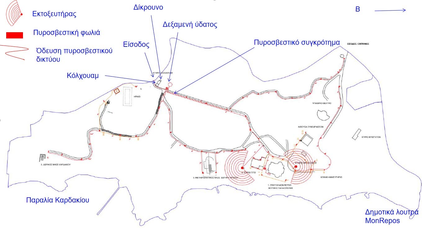 Στην εγκατάσταση συστήματος πυρασφάλειας στον αρχαιολογικό χώρο του κτήματος Μον Ρεπό, στην Κέρκυρα, και στην αναβάθμιση του υφιστάμενου συστήματος πυροπροστασίας στο Μουσείο της Παλαιόπολης, που στεγάζεται στην έπαυλη του Μον Ρεπό, προχωρά το Υπουργείο Πολιτισμού. Η επέμβαση αποσκοπεί στην αποτελεσματική προστασία του Μουσείου και των Συλλογών του, του φυσικού περιβάλλοντος του κτήματος, αλλά και στην ασφάλεια των εργαζομένων, των επισκεπτών και της κατοικημένης περιοχής που βρίσκεται σε άμεση γειτνίαση. Το έργο εντάσσεται στον ευρύτερο σχεδιασμό του Υπουργείου Πολιτισμού για την ενίσχυση των μέτρων πυροπροστασίας και θωράκισης, έναντι της κλιματικής κρίσης σε αρχαιολογικούς χώρους και μουσεία. Το έργο της πυρασφάλειας αφορά σε τμήμα του κτήματος Μον Ρεπό, έκτασης 60 στρεμμάτων περίπου. Περιλαμβάνει το μνημειακό πυρήνα του κτήματος και το Μουσείο με τον περιβάλλοντα χώρο του. Αναβαθμίζεται και η εγκατάσταση πυρόσβεσης στην έπαυλη και στον περιβάλλοντα χώρο της. Κατασκευάζεται νέο αυτόματο και αυτόνομο πυροσβεστικό συγκρότημα για την προστασία των μνημείων και τη διασφάλιση των οδεύσεων διαφυγής, στον υπόλοιπο αρχαιολογικό χώρο.