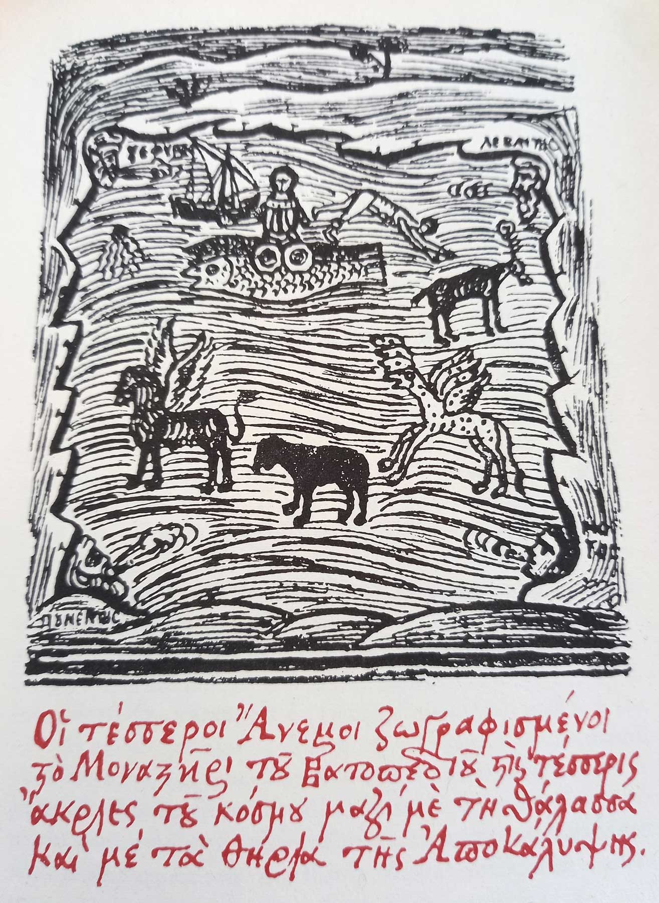 Από τότε ο Κόντογλου υιοθετεί τη βυζαντινή τέχνη, την οποία – όπως ο ίδιος έλεγε– δεν την αντιγράφει, αλλά τη διερμηνεύει. «Το 1923 έκανε μια έκθεση με έργα από το Άγιον Όρος στη Μυτιλήνη και την επόμενη χρονιά την παρουσίασε στην Αθήνα. Κυκλοφόρησε μάλιστα ένα λεύκωμα εν είδει φακέλου, με τίτλο “Η τέχνη του Άθω”, που περιλάμβανε σχέδια από τοιχογραφίες και φορητές εικόνες που αντέγραψε εκεί», εξηγεί ο κ. Ντούρος.