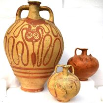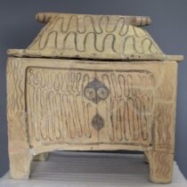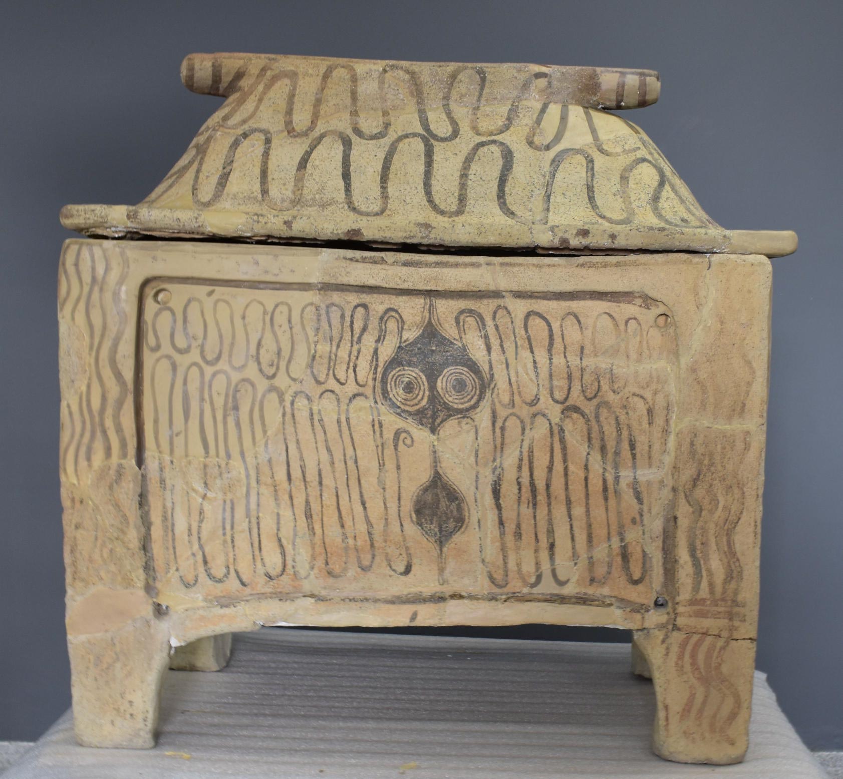 Πρόκειται για μια πήλινη κιβωτιόσχημη λάρνακα και τρεις ψευδόστομους αμφορείς του 13ου και του 12ου αι. π.Χ., που προέρχονται από την Κρήτη και υπήρξαν προσφορές και «σκεύη θανάτου» για τους νεκρούς.