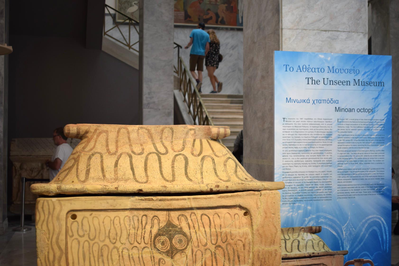 Το Αθέατο Μουσείο είναι η επιτυχημένη δράση του Εθνικού Αρχαιολογικού Μουσείου (ΕΑΜ) που προβάλλει επιλεγμένες αρχαιότητες από τον κόσμο των αποθηκών. Μετά από δεκάδες θαυμάσια αντικείμενα που παρουσιάστηκαν έως τώρα, το Αθέατο Μουσείο υποδέχεται τα «Μινωικά χταπόδια».