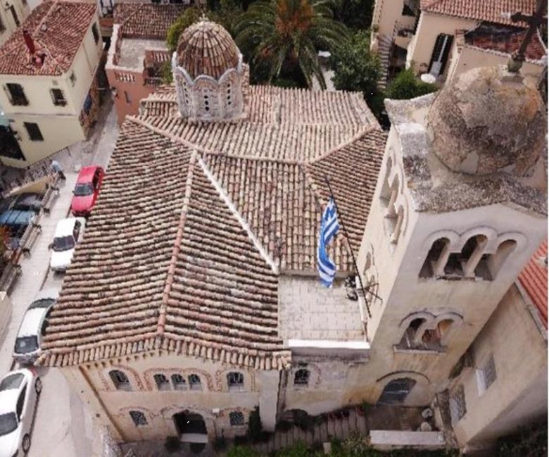 Ο ναός βρίσκεται στη συμβολή των οδών Πρυτανείου και Επιχάρμου. Ιδρύθηκε περί τα μισά του 11ου αιώνα. Στο μνημείο αναγνωρίζονται τέσσερις κύριες οικοδομικές φάσεις: