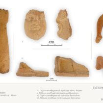 Η εικόνα του χώρου αλλάζει άρδην στις αρχές του 3ου αι. μ.Χ. πιθανότατα εξαιτίας της πολεοδομικής αναδιάρθρωσης της ρωμαϊκής πόλης. Ο χώρος του ιερού διαμορφώνεται σε ένα εκτεταμένο νεκροταφείο που χρησιμοποιείται έως τον 5ο αι. μ.Χ. Ανασκάφηκαν συνολικά 23 τάφοι, πλούσια κτερισμένοι με νομίσματα (εικ. 4), χρυσά και χάλκινα κοσμήματα, υάλινες χάντρες και υάλινα μυροδοχεία (εικ. 5), πήλινα αγγεία (εικ. 6), λύχνους (εικ. 7) κ.ά. Τέλος, εντός του οικιστικού ιστού της πόλης εντοπίστηκαν νέες δομές κατοίκησης ρωμαϊκών και ύστερων ρωμαϊκών χρόνων (εικ. 8).