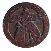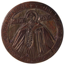 Με αφορμή τον εορτασμό του πολιούχου της Βέροιας, Αγίου Αντωνίου του Νέου, το πρώτο έκθεμα που παρουσιάζεται, φωτίζει πτυχές της εκκλησιαστικής και κοινωνικής ζωής της πόλης κατά τον 18ο και 19ο αιώνα. Πρόκειται για τη διπλή σφραγίδα επικύρωσης εκκλησιαστικών εγγράφων της «Μονής Αγίου Αντωνίου», ένα αντικείμενο λιτό στην όψη, αλλά ιδιαίτερα πλούσιο σε ιστορικές πληροφορίες.