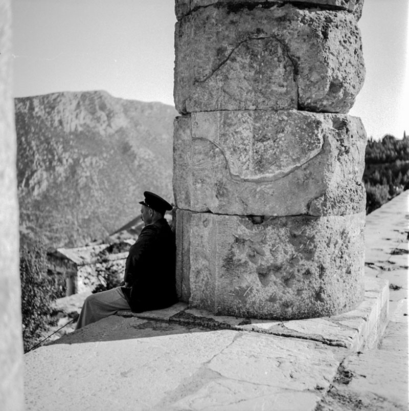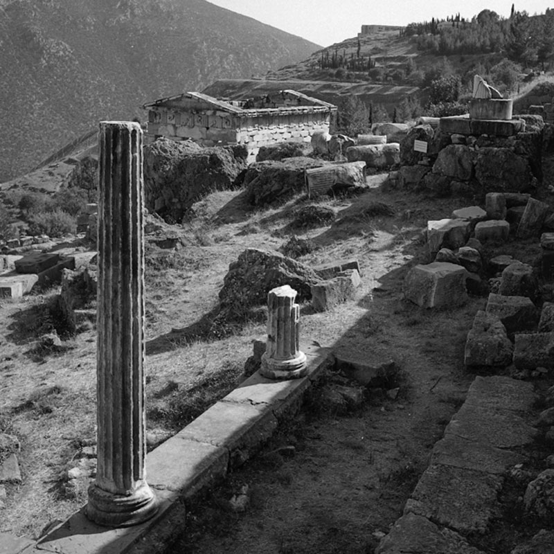 Η επιμελήτρια της έκδοσης σημειώνει στο ακόλουθο απόσπασμα του κειμένου της: «Το απολλώνιο φως αγκαλιάζει τα μνημεία, που προβάλλουν μεγαλόπρεπα μέσα στη θεία ηρεμία του Δελφικού τοπίου και ο φακός του καλλιτέχνη αιχμαλωτίζει, με το δικό του ποιητικό τρόπο, την εσωτερική δύναμη στην αδιάκοπη ανταλλαγή φωτός και ύλης, ξεγλιστρώντας από την αδήριτη μεταμόρφωση του χρόνου και χτίζοντας γέφυρα με το παρόν».