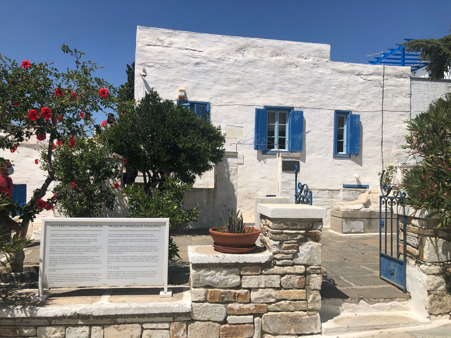 Η Υπουργός Πολιτισμού Λίνα Μενδώνη δήλωσε: «Σε συνδυασμό με τον εκσυγχρονισμό, την επέκταση των κτηριακών υποδομών και τον σύγχρονο εξοπλισμό της Ανώτερης Σχολής Καλών Τεχνών Μαρμαροτεχνίας Πανόρμου Τήνου –έργο που υλοποιείται από το Υπουργείο Πολιτισμού, με πόρους, άνω των 10.000.000 ευρώ, από το Ταμείο Ανάκαμψης– αποκαθίσταται η ιστορική Οικία του Γιαννούλη Χαλεπά, χαρακτηρισμένη ως διατηρητέο ιστορικό μνημείο. Τα έργα που εκτελούνται ενισχύουν την ταυτότητα της Τήνου ως τόπου άρρηκτα συνδεδεμένου με την τέχνη του μαρμάρου, αλλά και με τους σπουδαίους Τηνιακούς σμιλευτές και γλύπτες. Στον παραδοσιακό οικισμό του Πύργου, καλλιτεχνικό κέντρο της Τήνου, όπου αναδείχθηκαν σημαντικοί Έλληνες καλλιτέχνες (Δ. Φιλιππότης, Ν. Λύτρας κ.ά.), βρίσκεται  το ομώνυμο μουσείο Γιαννούλη Χαλεπά που διέκοψε τη λειτουργία του το 2023, προκειμένου να γίνουν οι εργασίες αποκατάστασης και συντήρησής του. Στο διώροφο κτήριο του 19ου αιώνα, οι εσωτερικοί χώροι λειτουργούν  ως εκθεσιακοί, ενώ ορισμένοι άλλοι όπως και ποικίλα χρηστικά αντικείμενα, υπενθυμίζουν την αρχική χρήση του κτηρίου ως κατοικίας, κτισμένης με λιθοδομή, ξύλινα πατώματα, βεράντα και αυλή. Τα αρχιτεκτονικά του χαρακτηριστικά αποκλίνουν από την παραδοσιακή λαϊκή αρχιτεκτονική της Τήνου, πιθανώς λόγω μετατροπών κατά τη διάρκεια της ζωής του καλλιτέχνη. Η αποκατάσταση  του μνημείου από το Υπουργείο Πολιτισμού τιμά τη μνήμη του καλλιτέχνη, αναδεικνύοντας την αυθεντικότητα και την ιστορικότητά του, μέσα από τη σωστή προβολή των εκθεμάτων και του κινητού εξοπλισμού. Η εμπειρία του επισκέπτη εμπλουτίζεται με ψηφιακά μέσα, που συμπληρώνουν τον εκπαιδευτικό και ψυχαγωγικό χαρακτήρα της έκθεσης, με όρους εμβάθυνσης και βιωματικότητας».