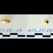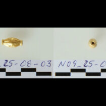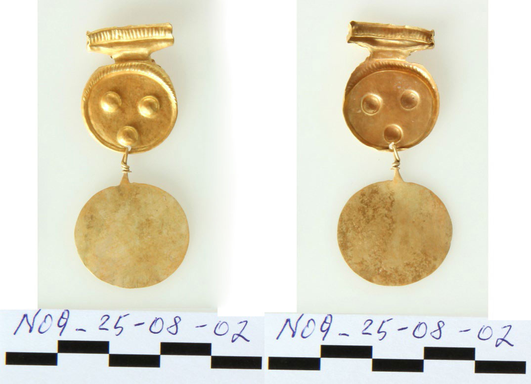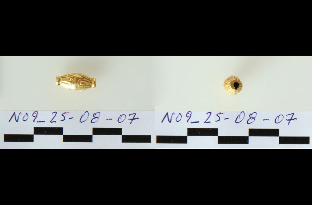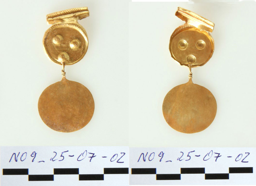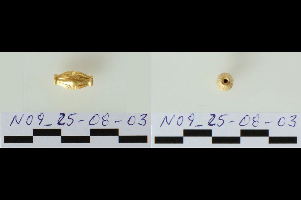 Πολύτιμα ευρήματα ήρθαν στο φως στον λόφο της Κολώνας στην Αίγινα κατά τη διάρκεια συστηματικής ανασκαφικής έρευνας το 2025. Συγκεκριμένα, κατά τη διάνοιξη ανασκαφικής τομής στο εσωτερικό μεγάλης λιθόκτιστης κατασκευής, που βρίσκεται εξωτερικά και σε άμεση γειτνίαση με τα κατάλοιπα του τείχους που προστάτευε την επέκταση του οικισμού της Μέσης Εποχής του Χαλκού (το λεγόμενο «εσωτερικό προάστιο»), βρέθηκαν οκτώ χρυσά διμερή δισκοειδή περίαπτα, ένα χρυσό δισκοειδές περίαπτο, επτά χρυσές αμφικωνικές ψήφοι, μία χρυσή κυλινδρική ψήφος, οκτώ διακοσμητικά ελάσματα από φύλλο χρυσού και επτά σφαιρικές ψήφοι από καρνεόλη. Όλα πιθανόν ανήκουν σε ένα χρυσό περιδέραιο ή κρεμαστό αντικείμενο, χρονολογούνται στο πρώτο μισό της 2ης χιλιετίας π.Χ. και διατηρούνται σε άριστη κατάσταση. Επιπλέον βρέθηκαν δώδεκα θραύσματα χαλκού που πιθανόν προέρχονται από μαχαιρίδια και μία βελόνη/περόνη.