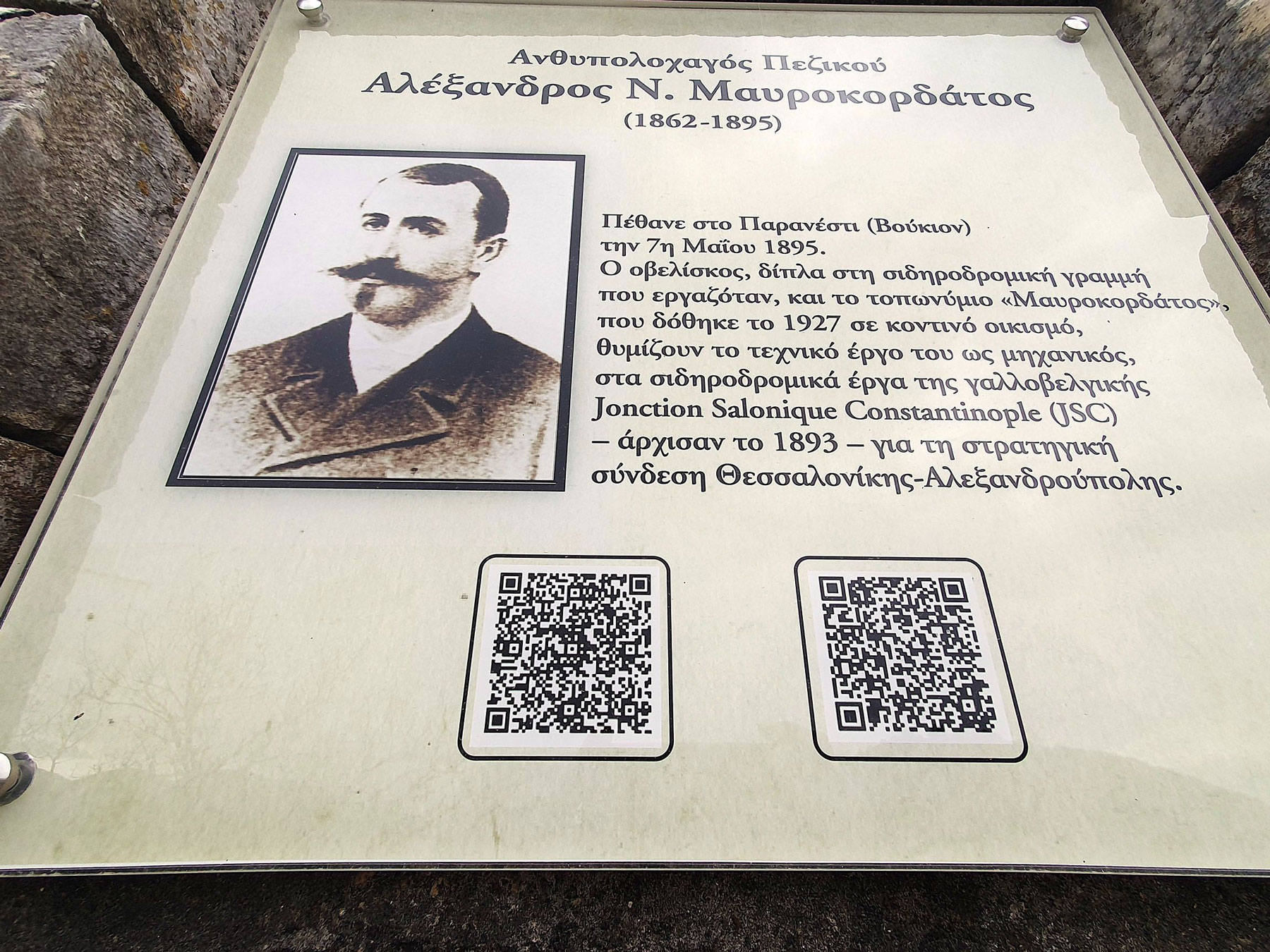 Ενημερωτική πινακίδα στον οβελίσκο του Μαυροκορδάτου στο Παρανέστι. Πηγή εικόνας: ΑΠΕ-ΜΠΕ.