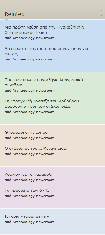 Σε μπλε φόντο εμφανίζονται τίτλοι άρθρων που σχετίζονται με το κυρίως άρθρο με βάση λέξεις-κλειδιά.