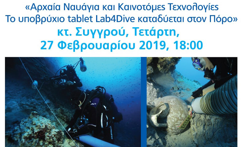 Αρχαιολογική ημερίδα με θέμα «Αρχαία ναυάγια και καινοτόμες τεχνολογίες. Το υποβρύχιο tablet Lab4Dive καταδύεται στον Πόρο».