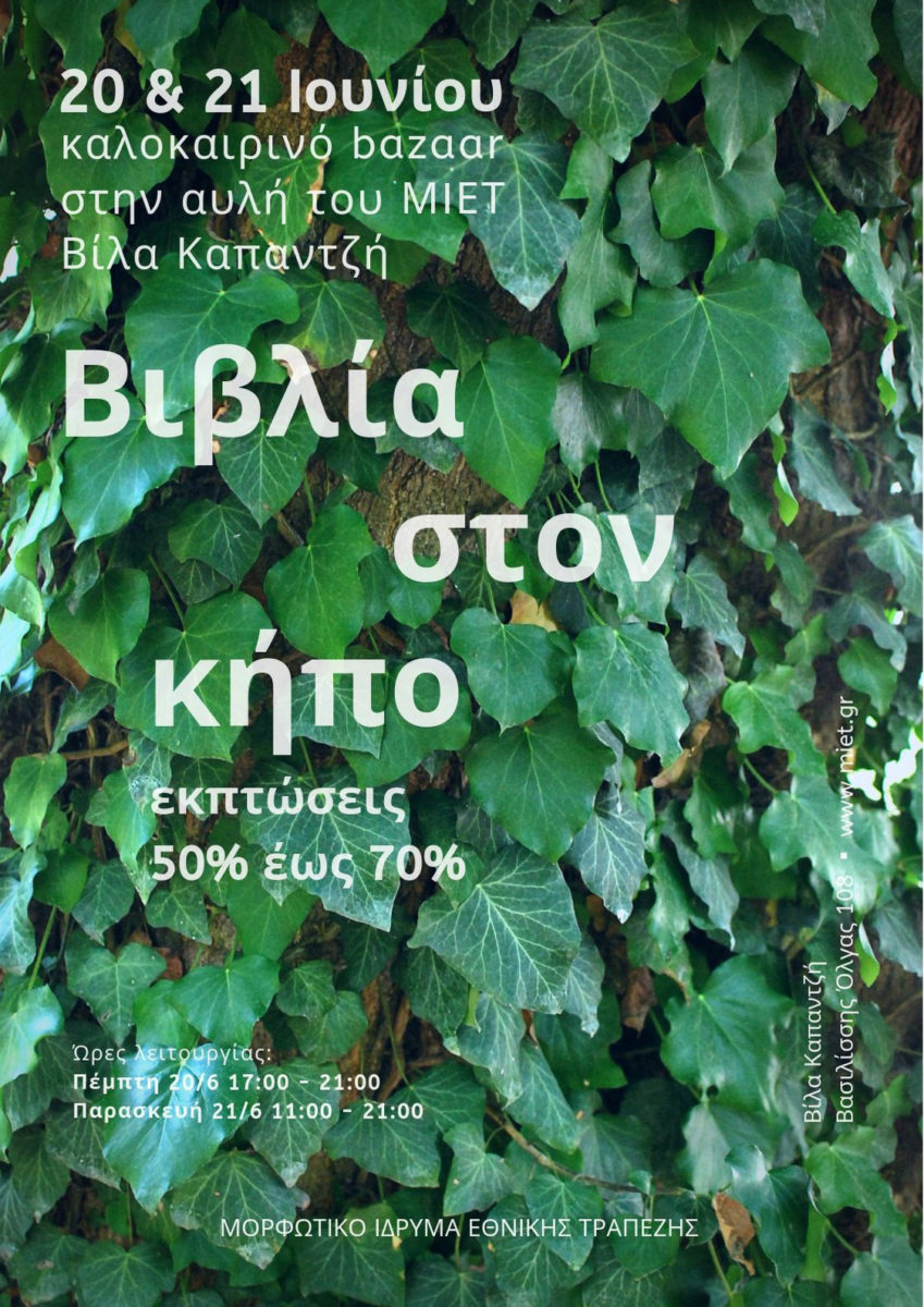 Το Μορφωτικό Ίδρυμα Εθνικής Τραπέζης προσκαλεί το κοινό στο βιβλιοφιλικό bazaar «Βιβλία στον κήπο» στη Θεσσαλονίκη.