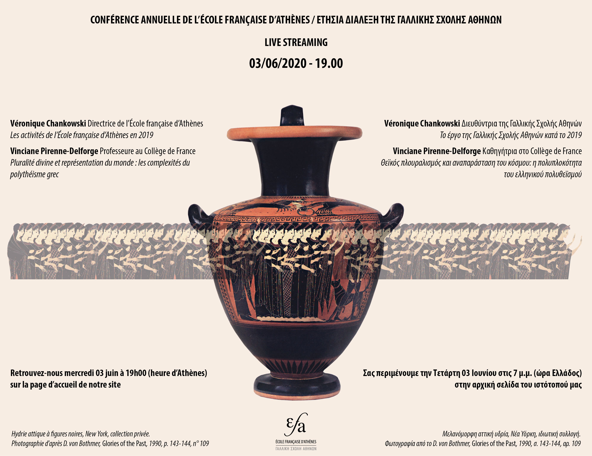 Θα ακολουθήσει διάλεξη της Vinciane Pirenne-Delforge (Καθηγήτρια στο Collège de France) με τίτλο «Pluralité divine et représentation du monde : les complexités du polythéisme grec antique» («Θεϊκός πλουραλισμός και αναπαράσταση του κόσμου: η πολυπλοκότητα του αρχαίου ελληνικού πολυθεϊσμού»).