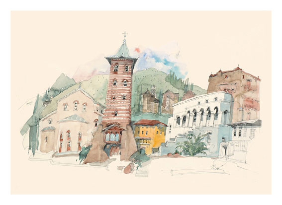 Έκθεση με έργα του Βρετανού αρχιτέκτονα-ζωγράφου Doug Patterson από το Άγιον Όρος και την Αγία Αικατερίνη του Σινά. Ο Doug Patterson ζωγραφίζει με έναν εξαιρετικό, αλλά και ιδιαίτερο τρόπο, εμπνεόμενος από το έργο των τριών ζωγράφων-περιηγητών του 18ου και 19ου αιώνα, Vasili Gregorovic Barsky (1701-1747), Samuel Davis (1760-1819) και Hercules Brabazon Brabazon (1820-1904). Ακολουθώντας τα βήματά τους στο Άγιον Όρος, στο Σινά, στην Ινδία, στο Μπουτάν και το Θιβέτ, ο Doug Patterson αποτυπώνει με την προσωπική του σφραγίδα τόπους, μνημεία, χώρους λατρείας, περιβάλλον και ανθρώπους πλουτίζοντας με μοναδικό τρόπο την ιστορία της περιηγητικής ζωγραφικής.