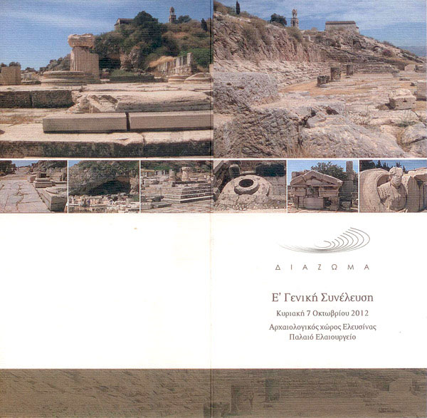 Της συνέλευσης θα προηγηθεί ξενάγηση στον Αρχαιολογικό χώρο της Ελευσίνας από την υπεύθυνη αρχαιολόγο της Γ’ Εφορείας Προϊστορικών και Κλασικών Αρχαιοτήτων, κα Καλλιόπη Παπαγγελή.