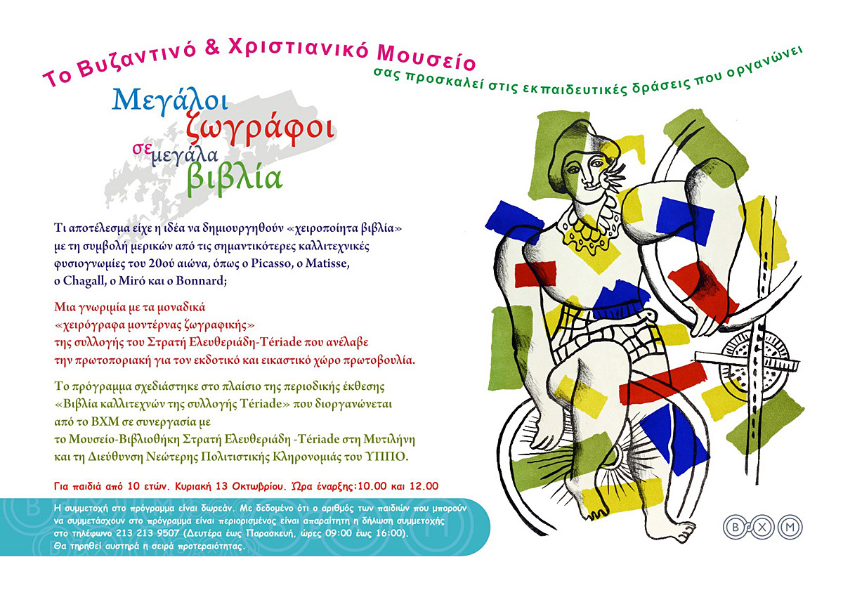 Eκπαιδευτική δράση που διοργανώνεται στο πλαίσιο της περιοδικής έκθεσης «Βιβλία καλλιτεχνών της συλλογής Tériade» από το Βυζαντινό και Χριστιανικό Μουσείο σε συνεργασία με το Μουσείο-Βιβλιοθήκη Στρατή Ελευθεριάδη -Tériade (Μυτιλήνη) και τη Διεύθυνση Νεώτερης Πολιτιστικής Κληρονομιάς του ΥΠΠΟΑ.