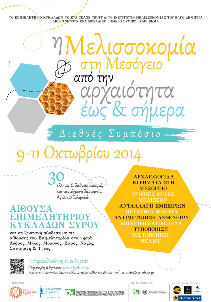 Διεθνές Συμπόσιο Μελισσοκομίας με θέμα «Η Μελισσοκομία στη Μεσόγειο από την αρχαιότητα έως και σήμερα: ιστορικά ευρήματα και επίκαιρα θέματα» διοργανώνουν το Eπιμελητήριο Κυκλάδων και ο ΕΛΓΟ «ΔΗΜΗΤΡΑ» σε συνεργασία με τo Eva Crane Trust.