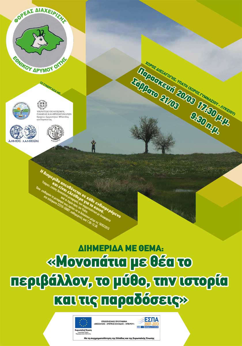 Eπιμορφωτική διημερίδα με θέμα «Μονοπάτια με θέα το περιβάλλον, το μύθο, την ιστορία και τις παραδόσεις» διοργανώνει ο Φορέας Διαχείρισης Εθνικού Δρυμού Οίτης.