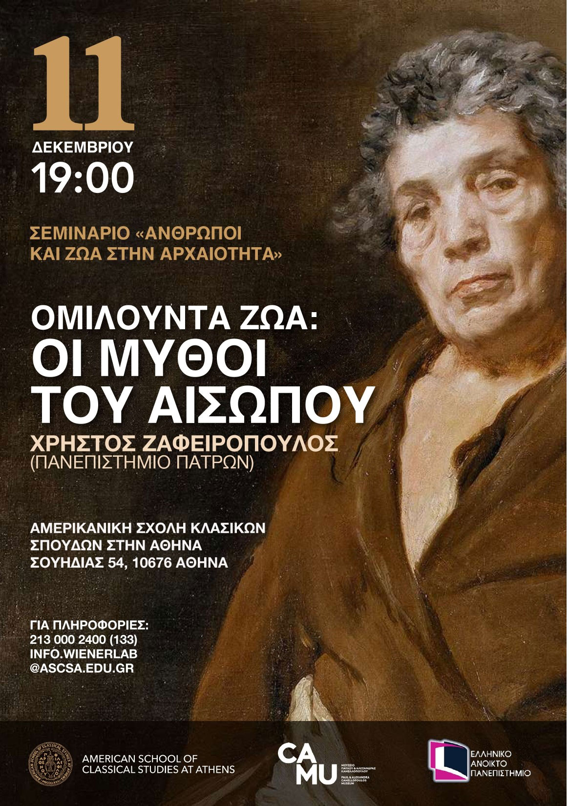Διάλεξη του δρος Χρήστου Ζαφειρόπουλου (Πανεπιστήμιο Πατρών) με τίτλο «Ομιλούντα ζώα: οι μύθοι του Αισώπου».