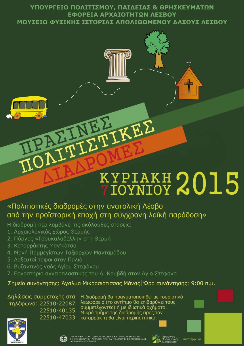 Δράση με τίτλο «Πολιτιστικές διαδρομές στην ανατολική Λέσβο από την προϊστορική εποχή στη σύγχρονη λαϊκή παράδοση» διοργανώνουν η Εφορεία Αρχαιοτήτων Λέσβου και το Μουσείο Φυσικής Ιστορίας Απολιθωμένου Δάσους Λέσβου.