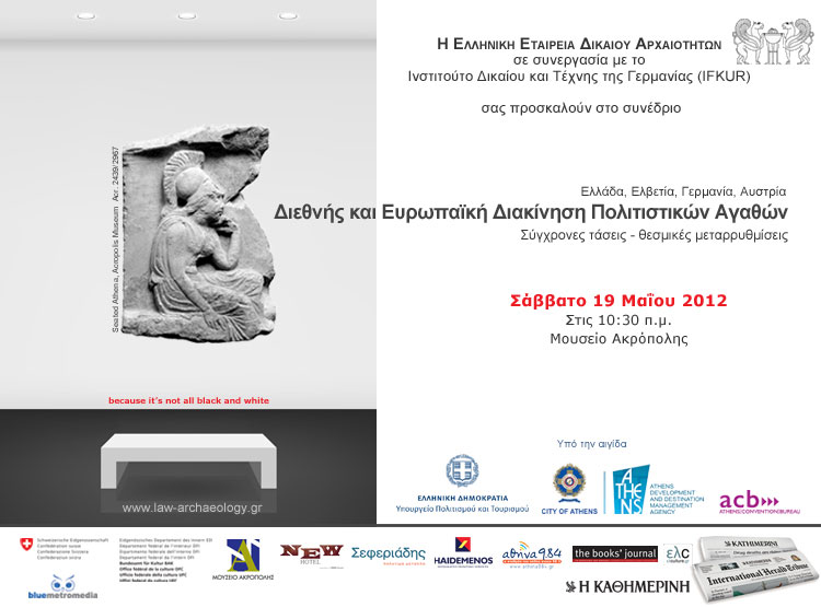 Η Ελληνική Εταιρεία Δικαίου Αρχαιοτήτων (ΕΕΔικΑ) διοργανώνει υπό την αιγίδα του Υπουργείου Πολιτισμού και Τουρισμού, με την υποστήριξη του Ελβετικού Υπουργείου Πολιτισμού καισε συνεργασία με το γερμανικό Ινστιτούτο για το Δίκαιο και την Τέχνη (IFKUR), το πρώτο διεθνούς εμβέλειας νομικό συνέδριο στην Ελλάδα για την Τέχνη και τον Πολιτισμό με θέμα: «Η Διεθνής και Ευρωπαϊκή Διακίνηση Πολιτιστικών Αγαθών: Σύγχρονες Τάσεις – Θεσμικές Μεταρρυθμίσεις. Ελλάδα, Ελβετία, Γερμανία, Αυστρία».