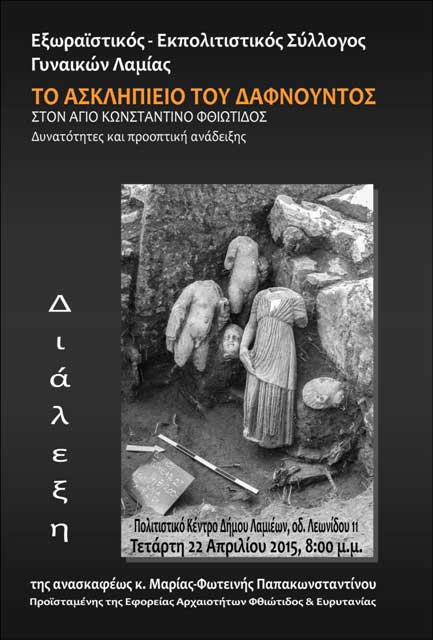 Διάλεξη της Μαρίας-Φωτεινής Παπακωνσταντίνου, Προϊσταμένης της Εφορείας Αρχαιοτήτων Φθιώτιδας και Ευρυτανίας, με θέμα «Το Ασκληπιείο του Δαφνούντος στον Άγιο Κωνσταντίνο Φθιώτιδας: δυνατότητες και προοπτική ανάδειξης».